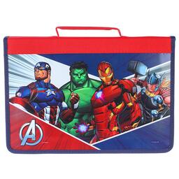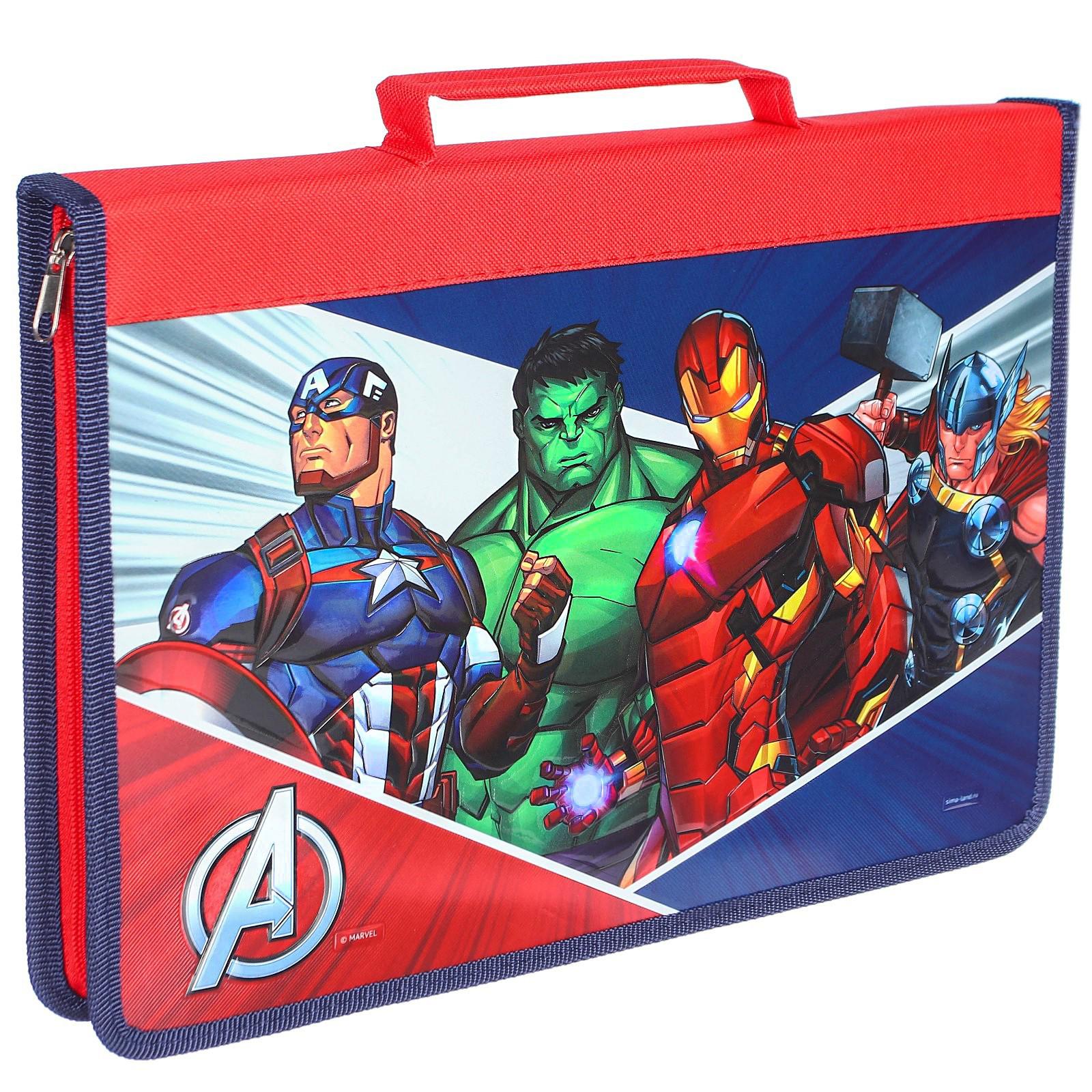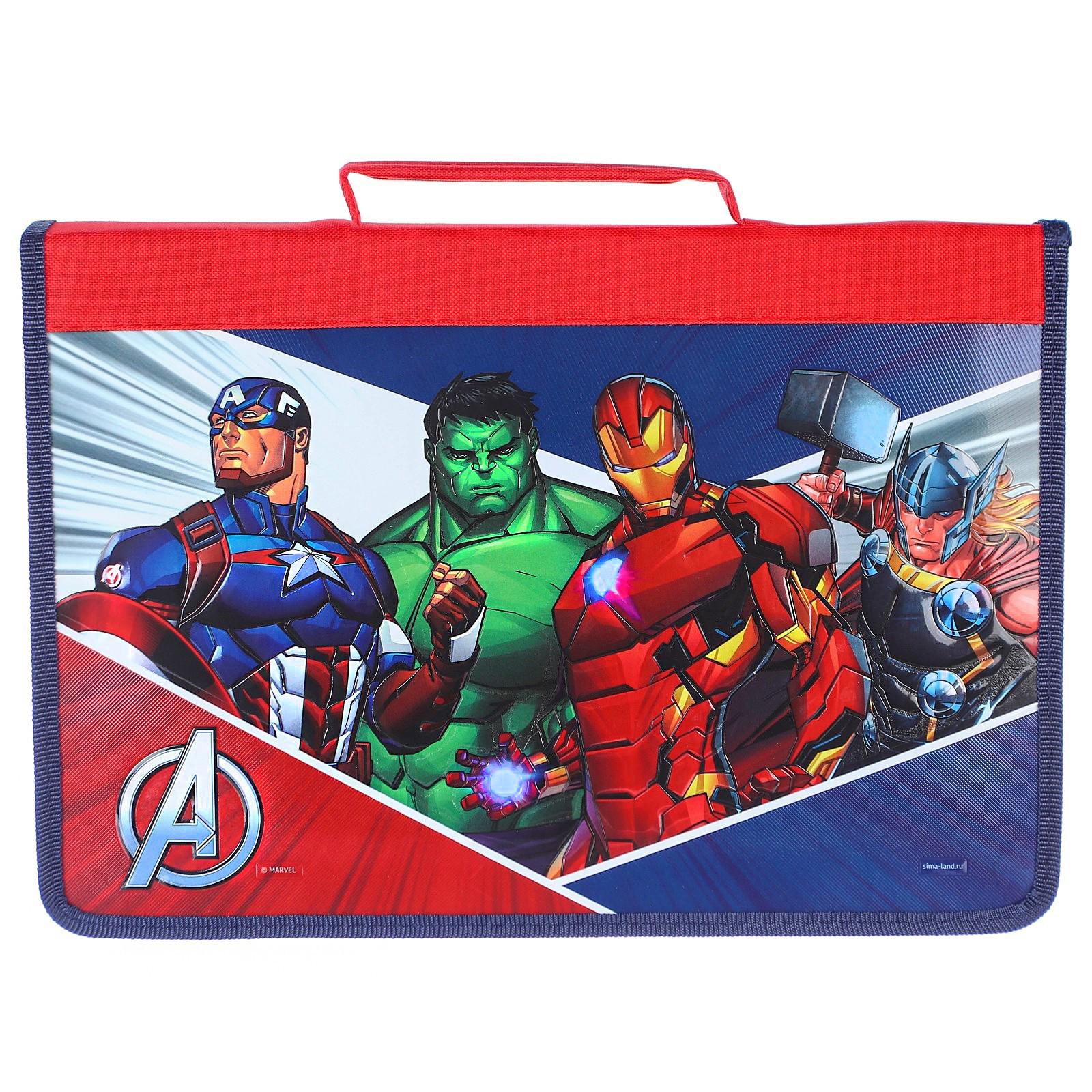 Папка-пенал для труда А4, молния вокруг с ручкой, "Мстители" (объемный 3D-рисунок с эффектом металлика)