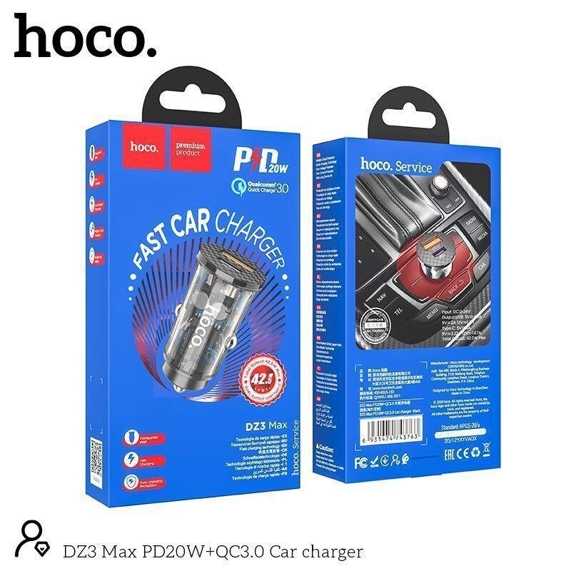 Автомобильное зарядное устройство HOCO DZ3 Max USB + Type-C QC3.0 + PD20W (Быстрая зарядка) Чёрное