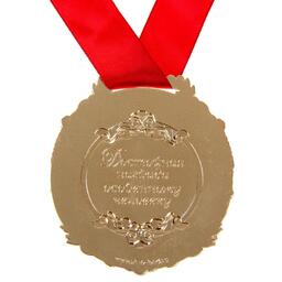Медаль изготовлена из фигурного металла золотистого цвета, декорирована цветной вставкой с акриловым покрытием, что предотвращает её потускнение. Награда упакована в бархатную подарочную коробку, идет в комплекте с лентой.