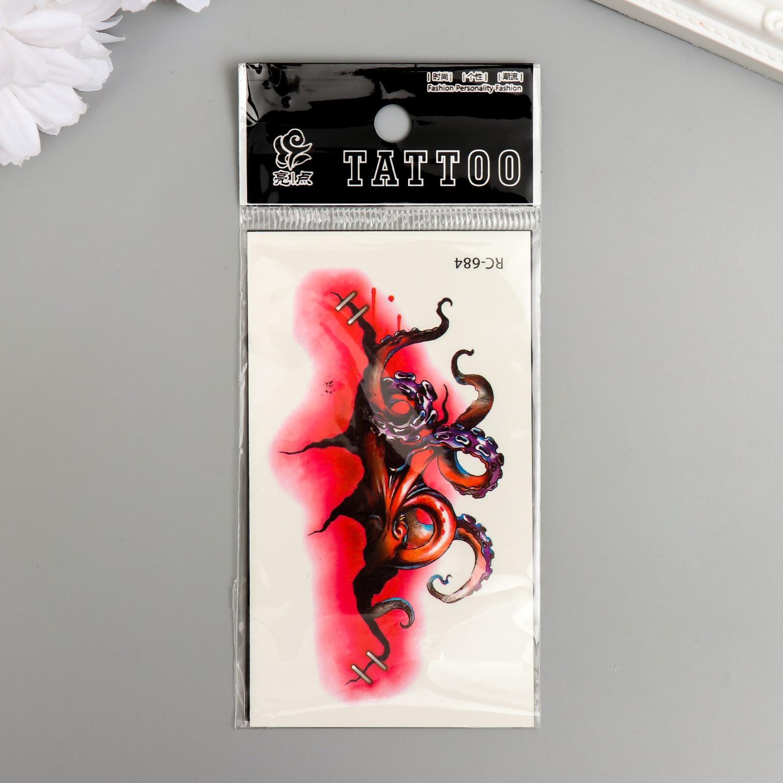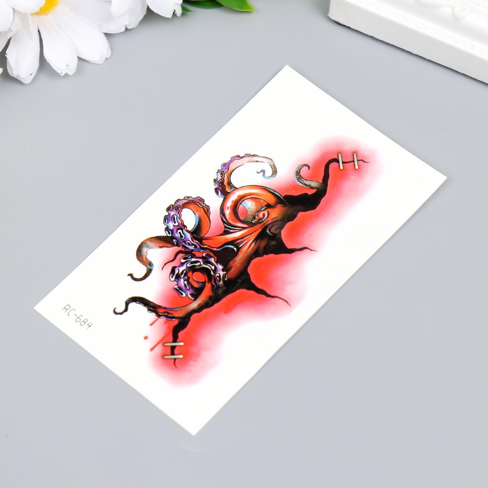 Татуировка на тело цветная "Осьминог из раны" 10,5х6 см