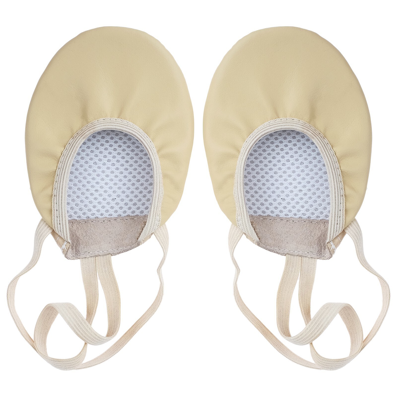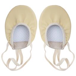 Мягкие и удобные получешки подходят для тренировок и выступлений по художественной гимнастике. Используя такую обувь можно добиться большей гибкости стопы, чем в обычных чешках. Они сделаны из прочных материалов, благодаря чему прослужат не один сезон. Держатся на стопе благодаря аккуратным резинкам. Наполовину открытая нога не скользит во время выполнения элементов. Получешки телесных оттенков практически незаметны во время выступления.
