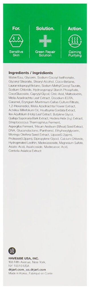 Описание товара Мягкая энзимная пенка для умывания Dr. Jart+ Cicapair 100 мл