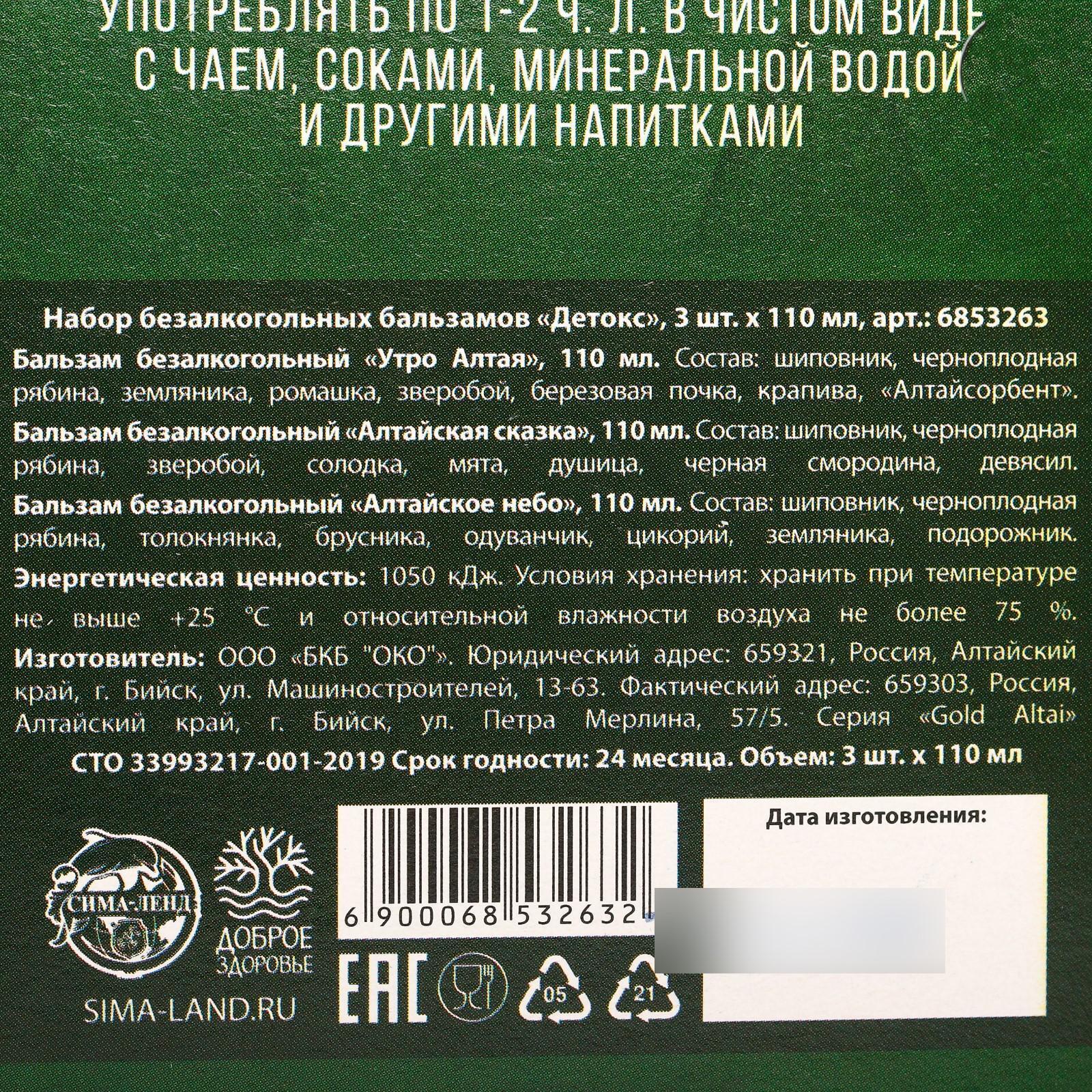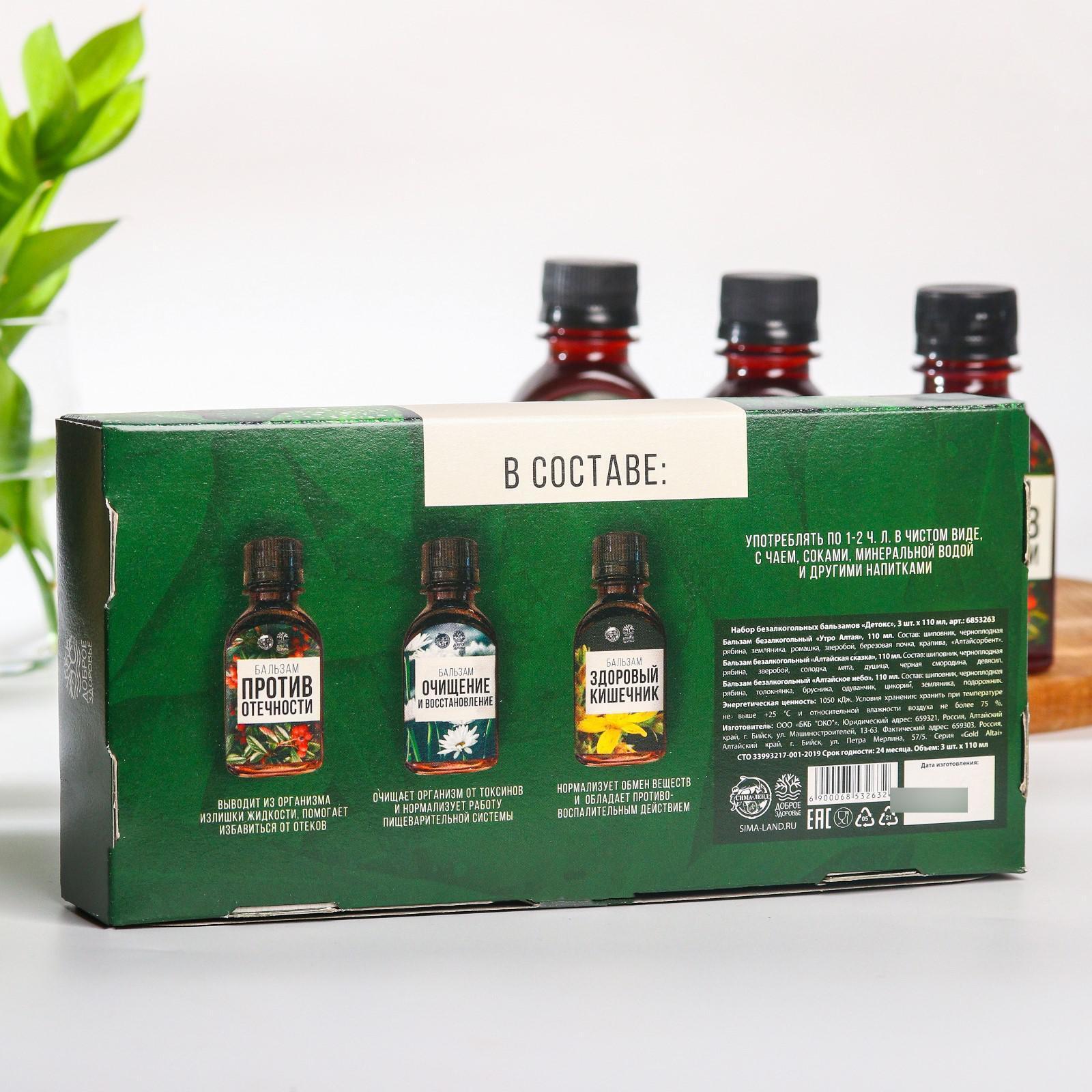 Набор безалкогольных бальзамов «Детокс» на травах горного Алтая, в пластиковой бутылке, 3 шт х110 мл.