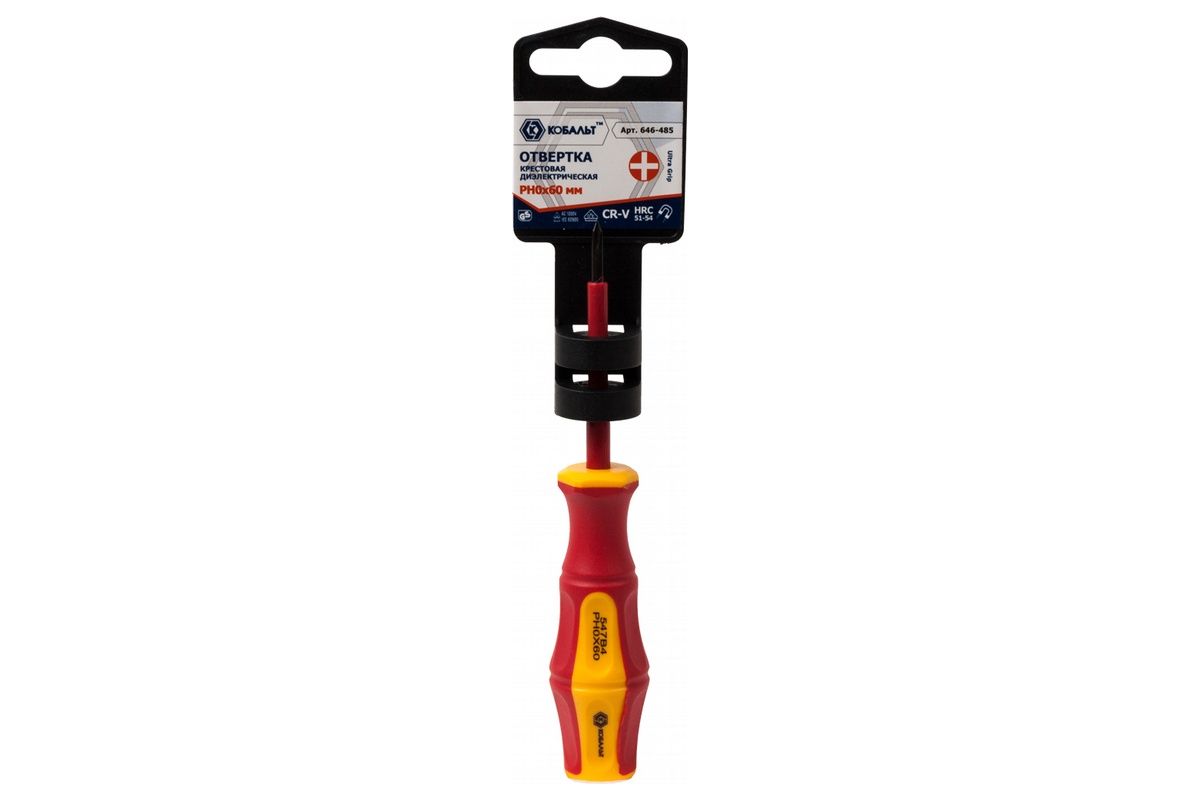 Отвертка КОБАЛЬТ 646-485 диэлектрическая Ultra Grip PH-0 х 60мм CR-V, двухкомп.рукоятка 1шт подвес