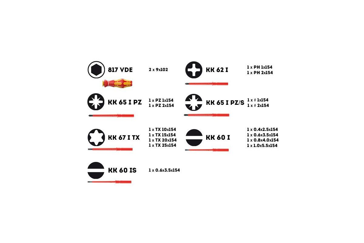 Набор диэлектрический WERA Kraftform Kompakt 60i+iS/62i/65i/67i/17 059030.