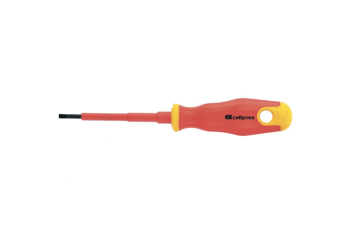 Отвертка СИБРТЕХ 12933 диэлектрическая sl5.5х125мм crv до 1000в двухкомпонентная рукоятка