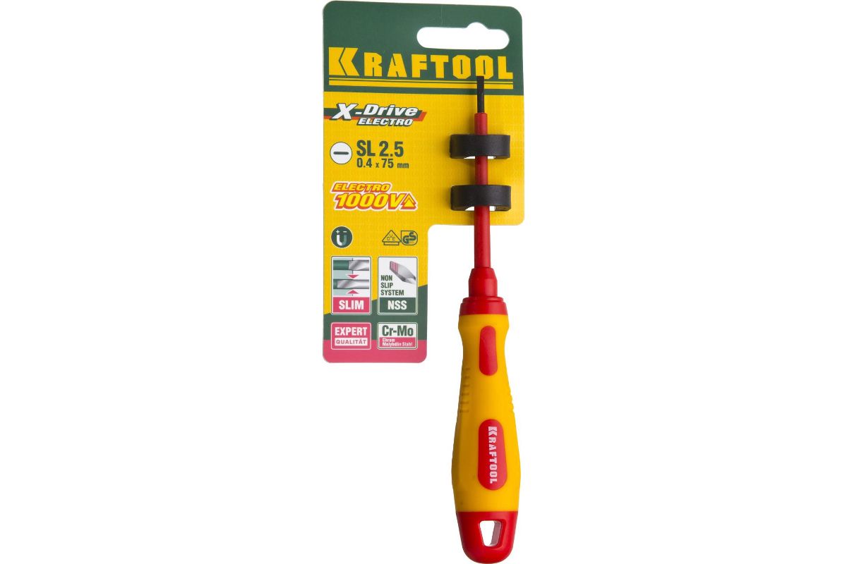 Отвертка KRAFTOOL 250083-2.5-075 высоковольтная, Cr-Mo-V стержень, SL, 2,5х75мм