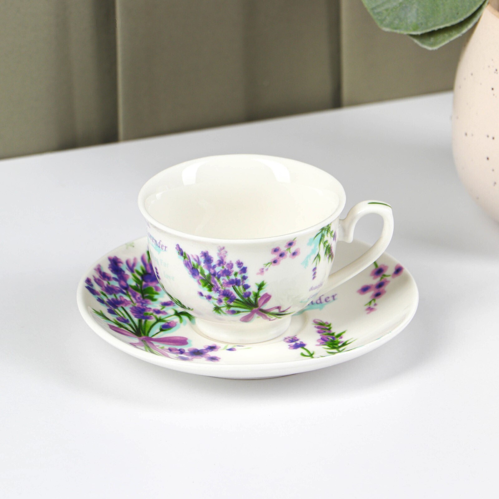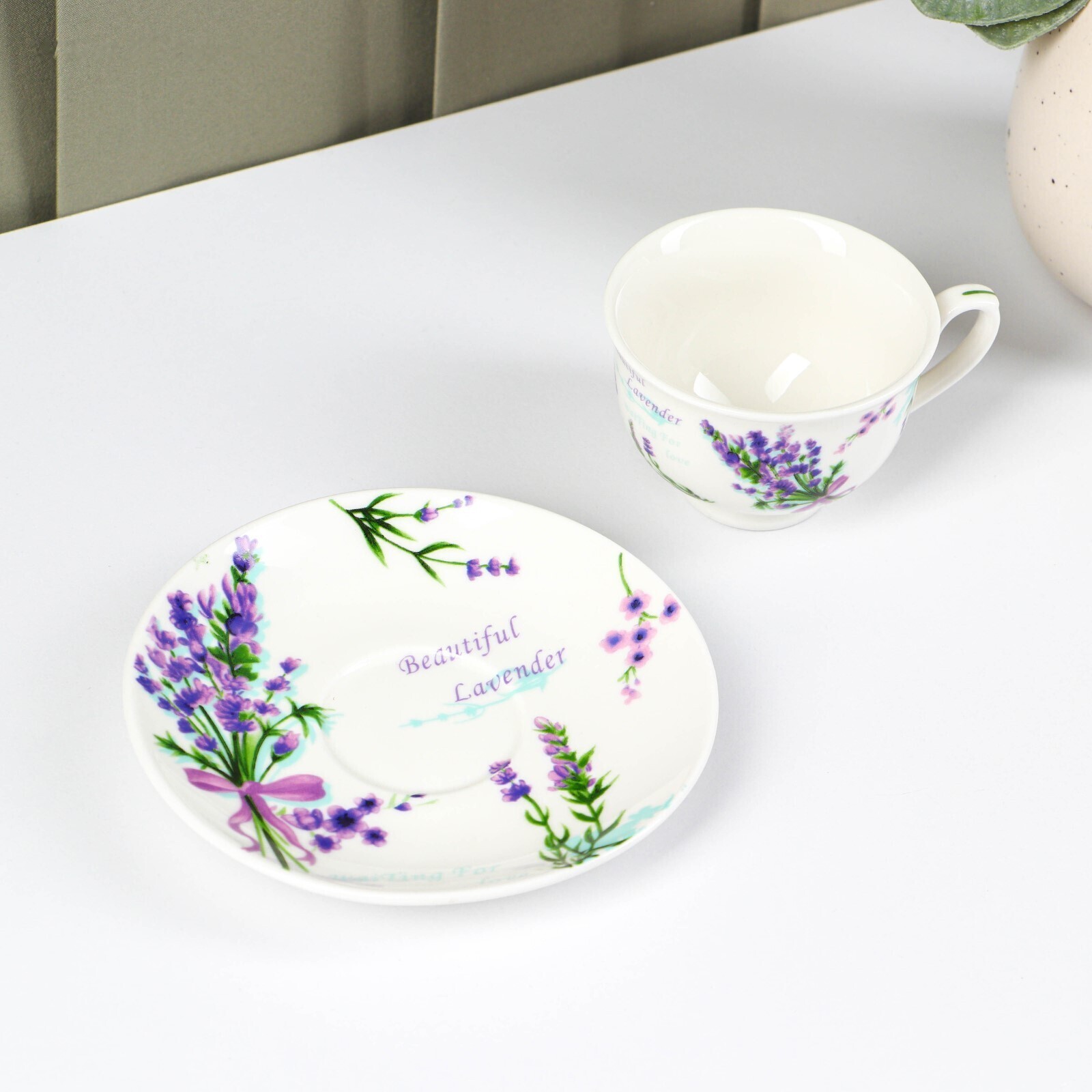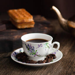 Кофейная пара Доляна «Лаванда» изготовлена из качественного костяного фарфора. Такая посуда не только тоньше, но и заметно легче, чем аналогичные изделия из обычного фарфора. Благодаря оригинальному дизайну, изделие легко украсит вашу кухню, а также прекрасно подойдёт в качестве подарка. Кофейная пара выполнена в приятных тонах, что позволит вписать её практически в любой интерьер.