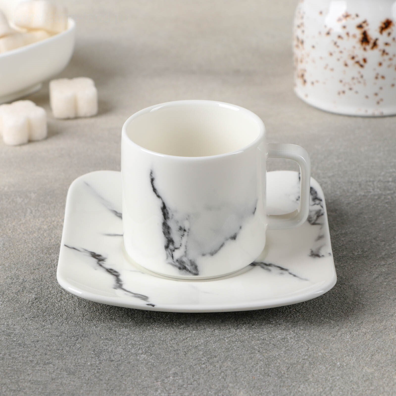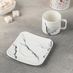Кофейная пара «Мрамор», чашка 90 мл, блюдце d=11,2 см, цвет белый