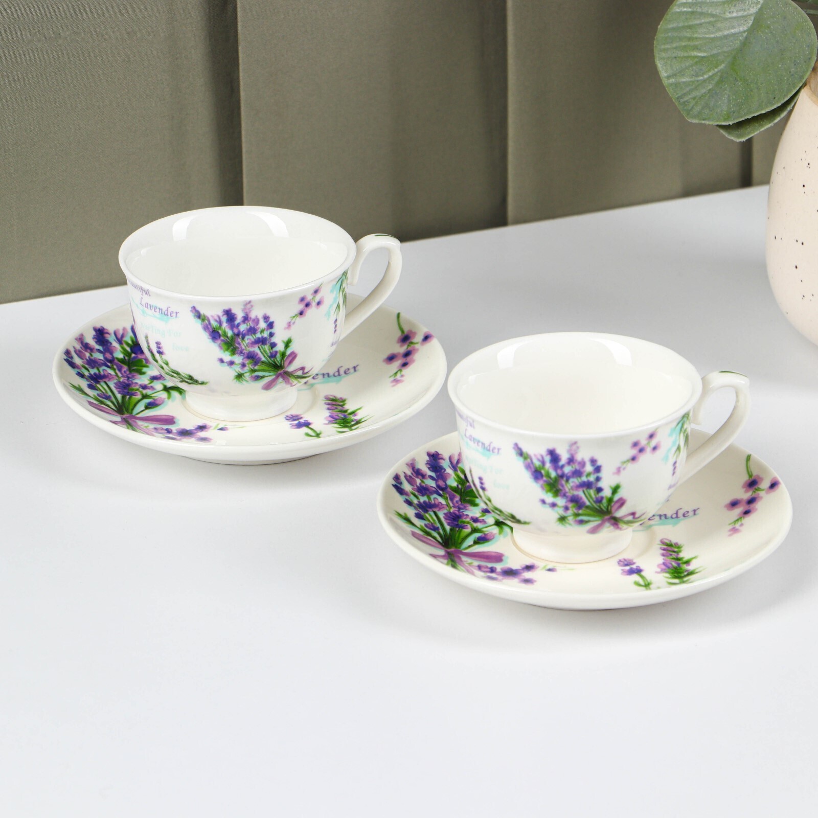 Набор кофейный Доляна «Лаванда», 4 предмета: 2 чашки 80 мл, 2 блюдца