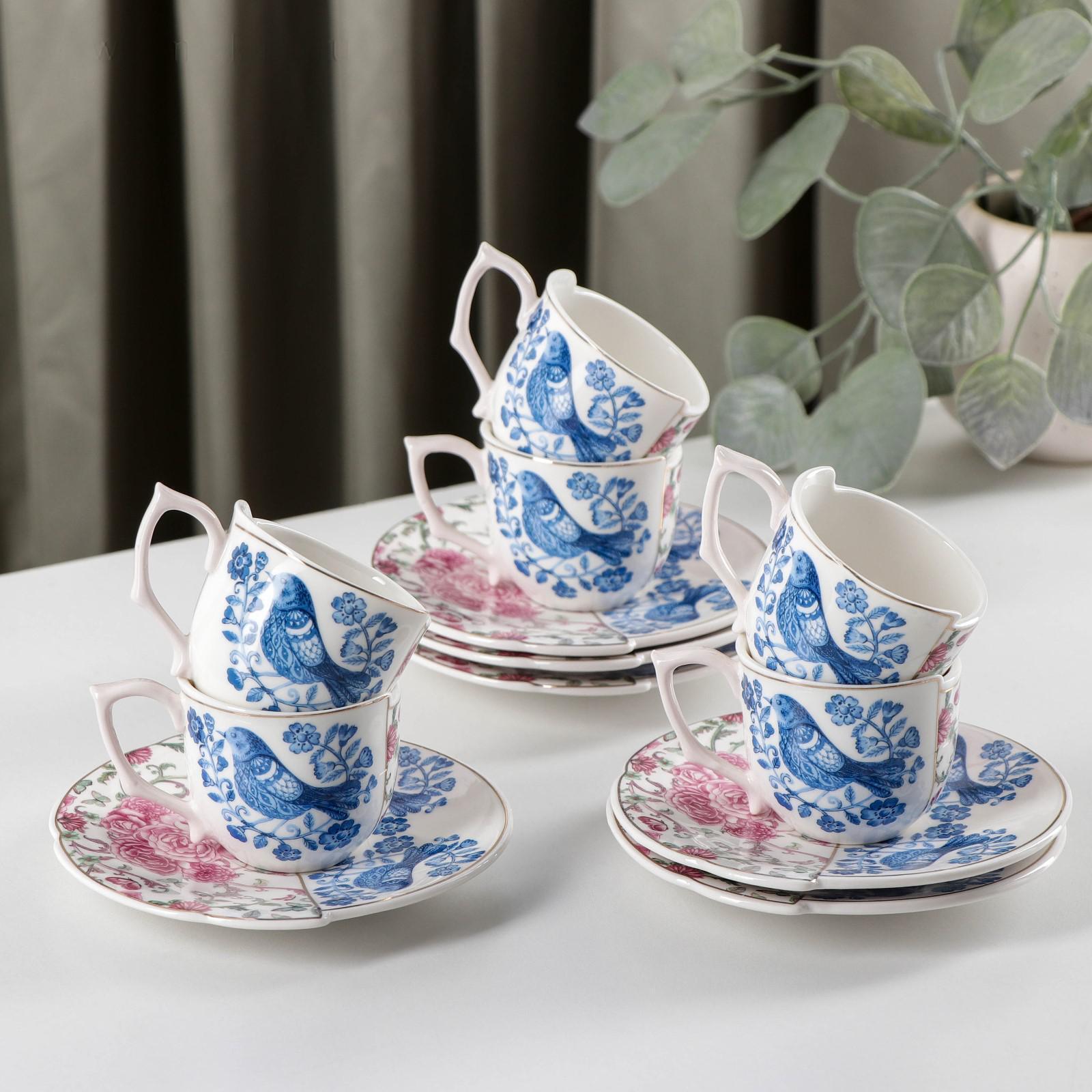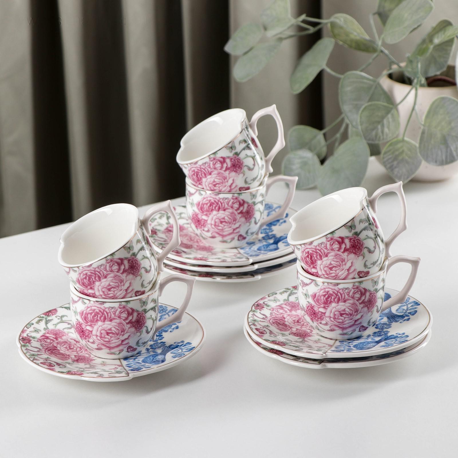 Сервиз кофейный «Дабл», 12 предметов, 6 чашек 90 мл, 6 блюдец d=12,8 см
