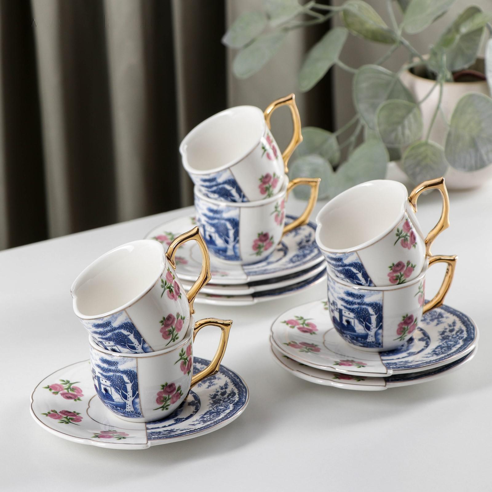 Сервиз кофейный «Дабл», 12 предметов, 6 чашек 90 мл, 6 блюдец d=12,8 см