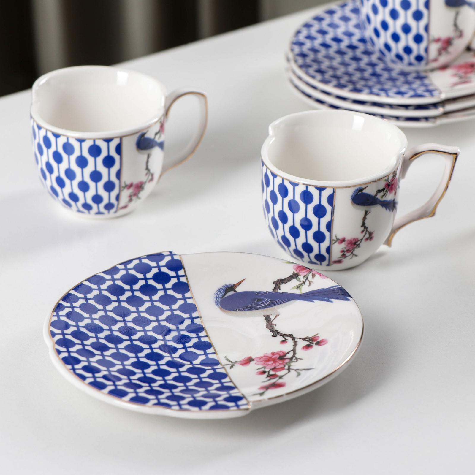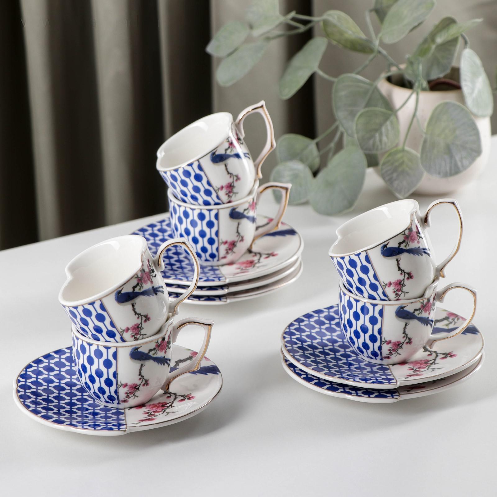 Сервиз кофейный «Дабл», 12 предметов, 6 чашек 90 мл, 6 блюдец d=12,8 см