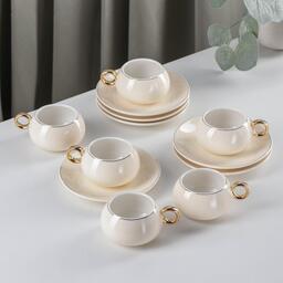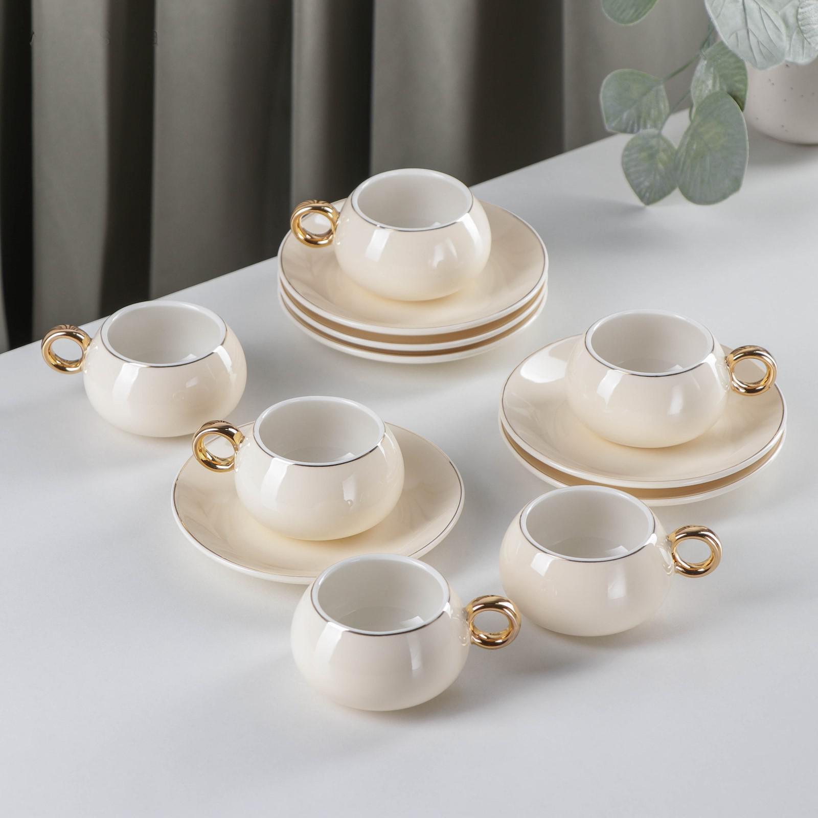 Сервиз кофейный «Капля», 12 предметов: 6 чашек 90 мл, 6 блюдец d=12 см, цвет белый