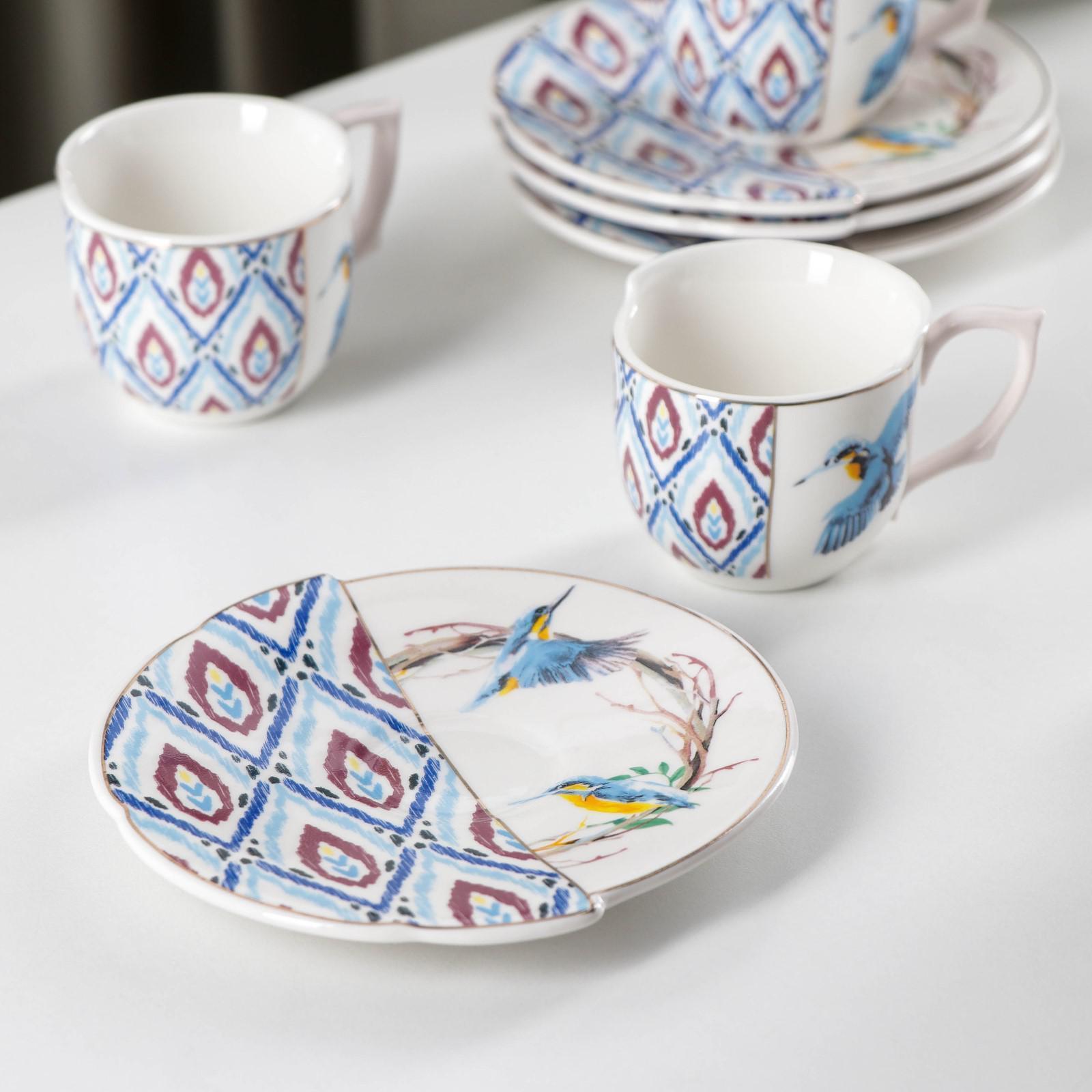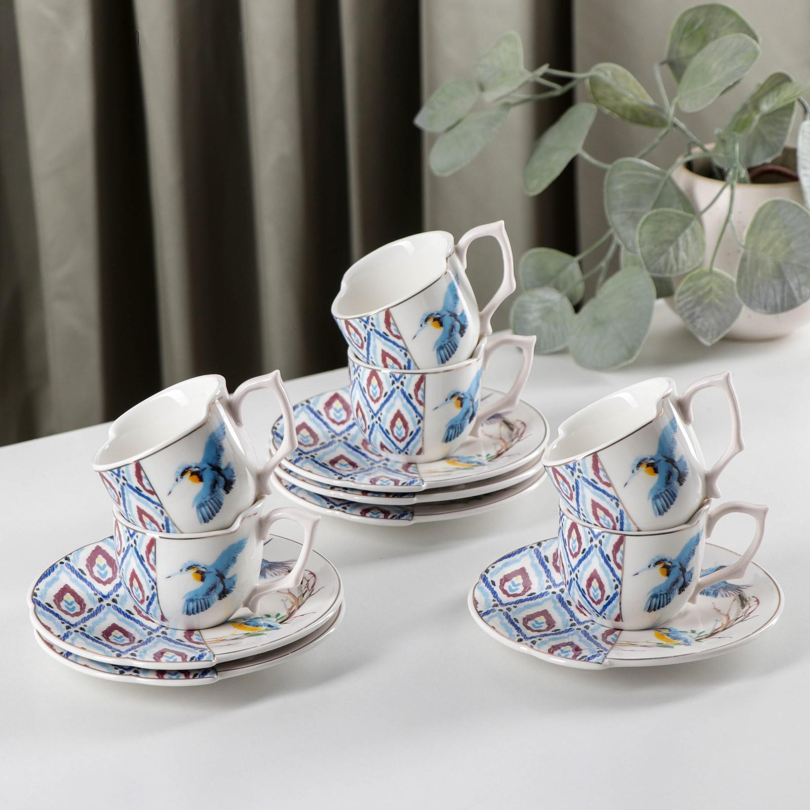 Сервиз кофейный «Дабл», 12 предметов, 6 чашек 90 мл, 6 блюдец d=12,8 см