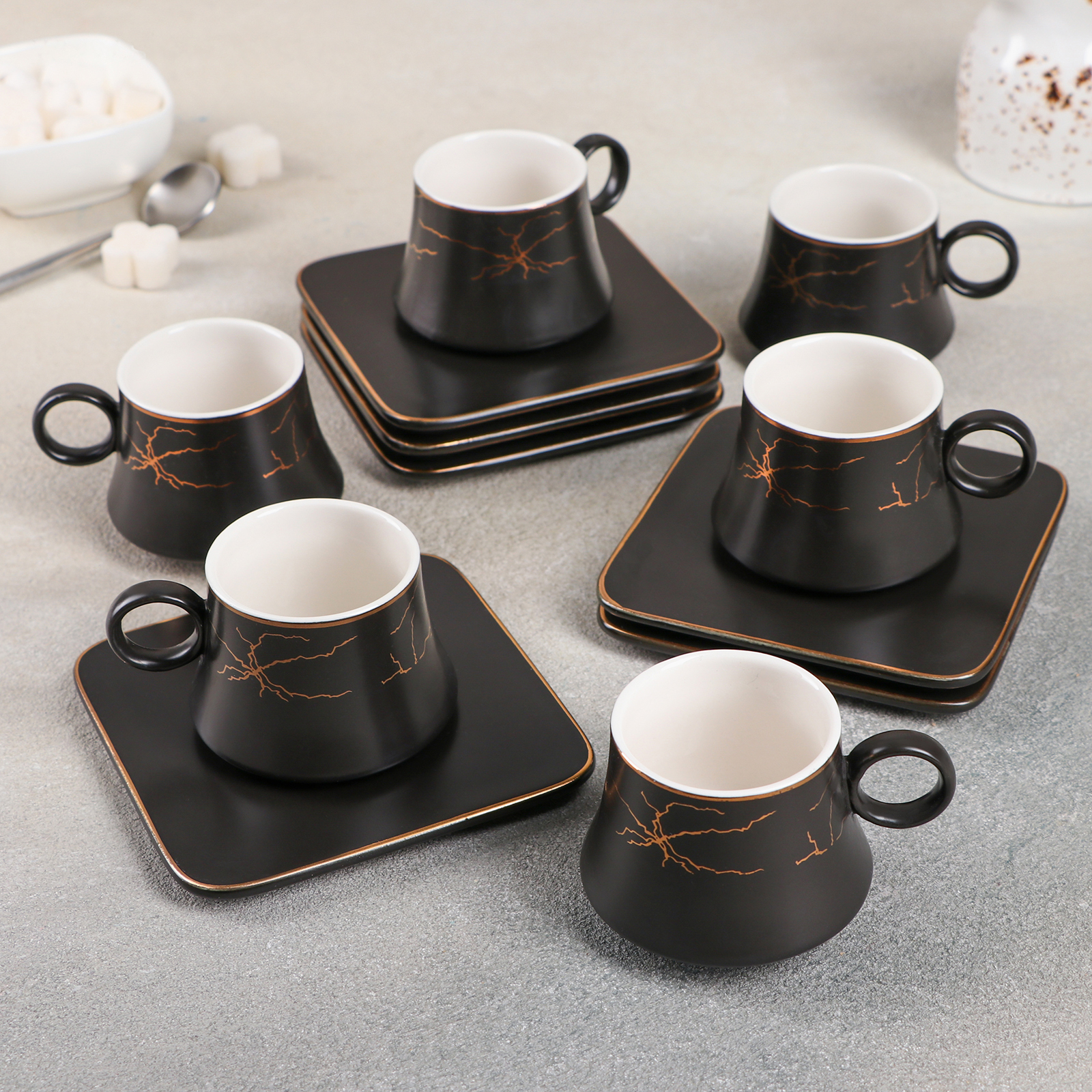 Набор кофейный «Мейси», 12 предметов: 6 чашек 100 мл, 6 блюдец d=11 см, цвет чёрный