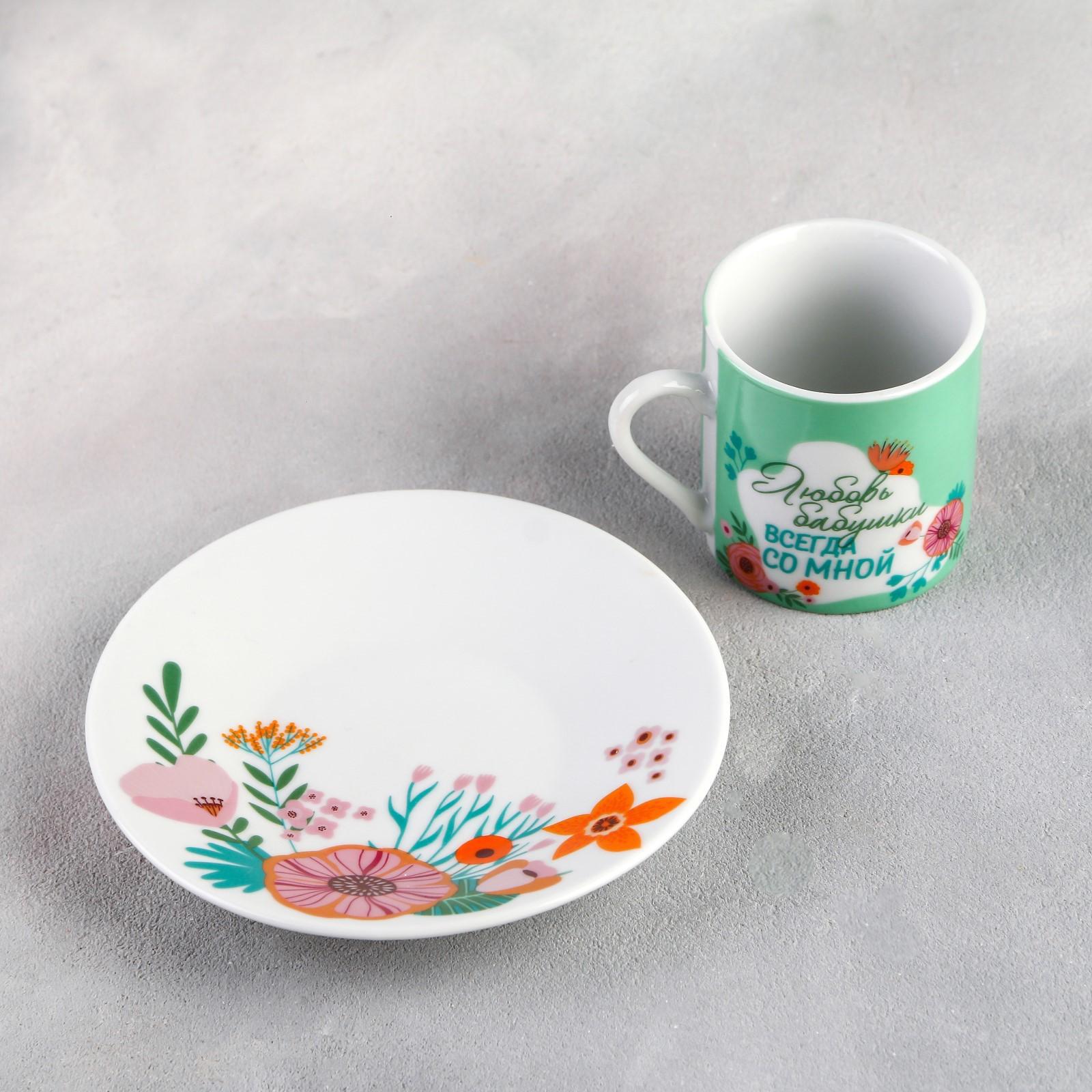 Набор «Любовь бабушки»: кружка 70 мл, блюдце Ø 11 см