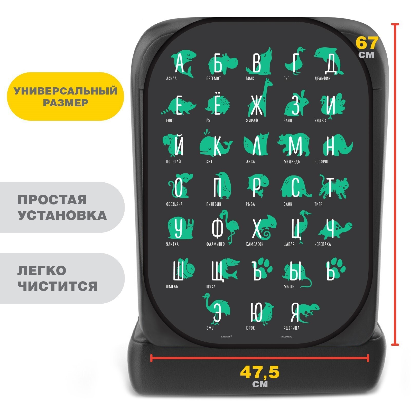 Чехол на автомобильное кресло 475*670 мм «Алфавит, изучаем животных»