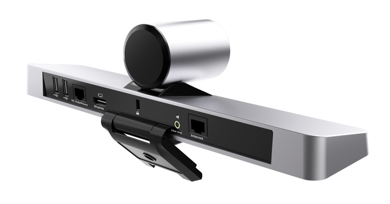 Tерминал видеоконференцсвязи для небольших переговорных комнат. Управляемая видеокамера с функцией электронного (еPTZ) движения: наклон, поворот, зум. Четкость видеозахвата до 4К (4096 3072 пикселей). Конструкция "все в одном": кодек со встроенной видеокамерой и массивом из 6 микрофонов, формирующих широкоугольную зону захвата голоса дальностью до 5 метров направленностью на говорящего. Поддержка записи видеоконференций на USB-накопитель. На выбор предлагаются адаптеры для проводной VCH50/VCH51 или беспроводной WPP20 передачи контента. Совместим с решениями других вендоров по протоколам SIP и H.323, в сочетании с VCH51, поддерживает режим BYOD для коммуникационных приложений пользователя.