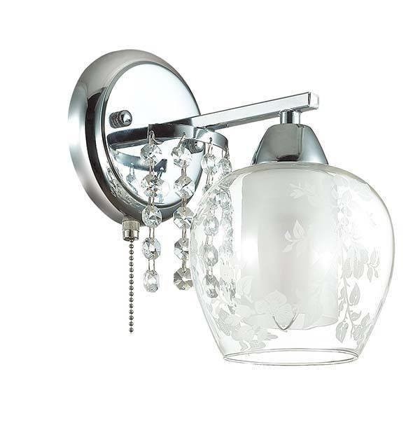 Бра 3065/1W серии Kristalin оформлена в современном стиле. Светильник состоит из плафона, изготовленного из двойного стекла, нижняя часть которого матовая, а верхняя - прозрачная с вензельным рисунком, и арматуры хромового цвета, обильно украшенной подвесками из хрусталя. С данной моделью свет в Вашей квартире заиграет новыми красками. Цоколь E14. Мощность 1x60W. Нет ламп в комплекте.