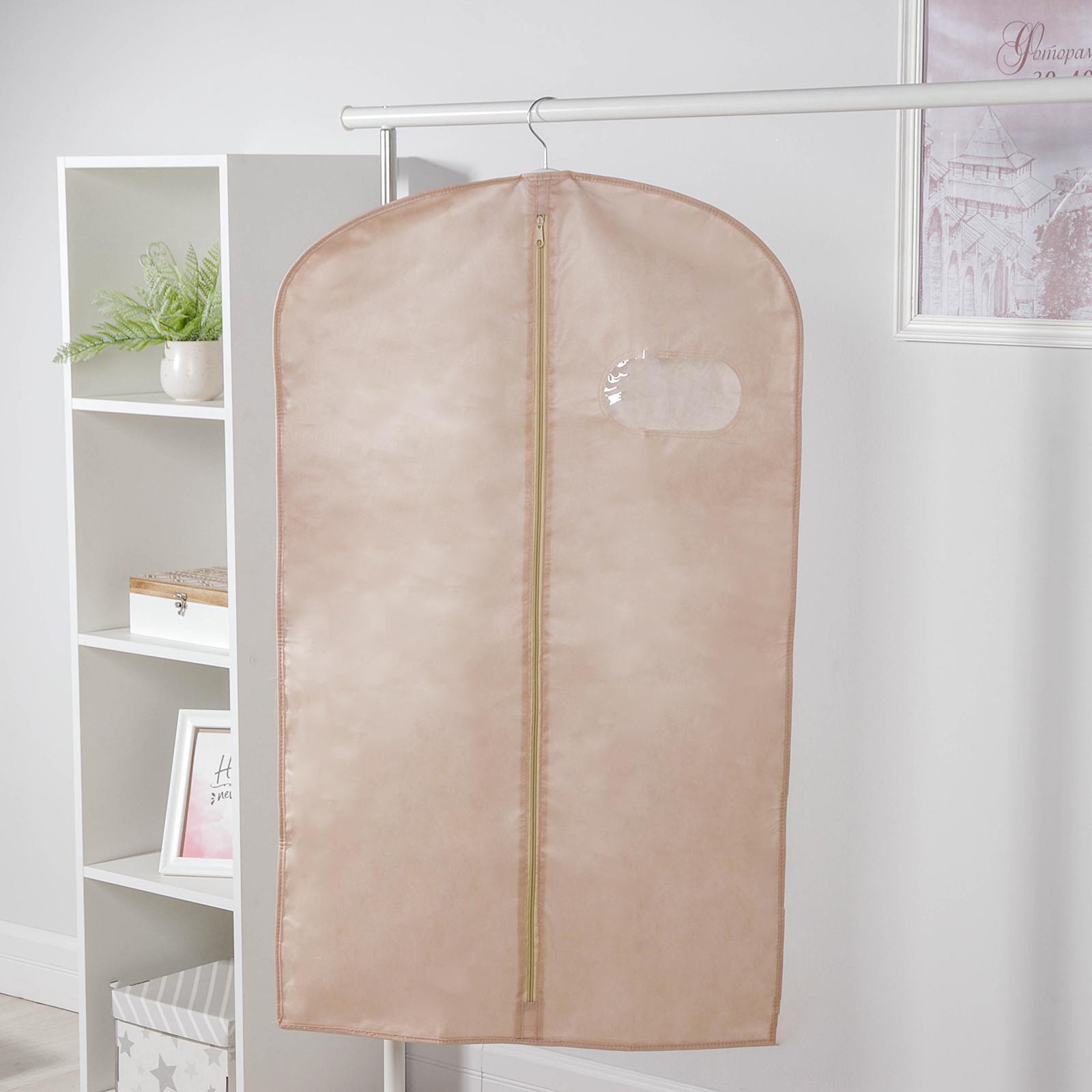 Чехол для одежды с окном, 60×120 см, спанбонд, бежевый