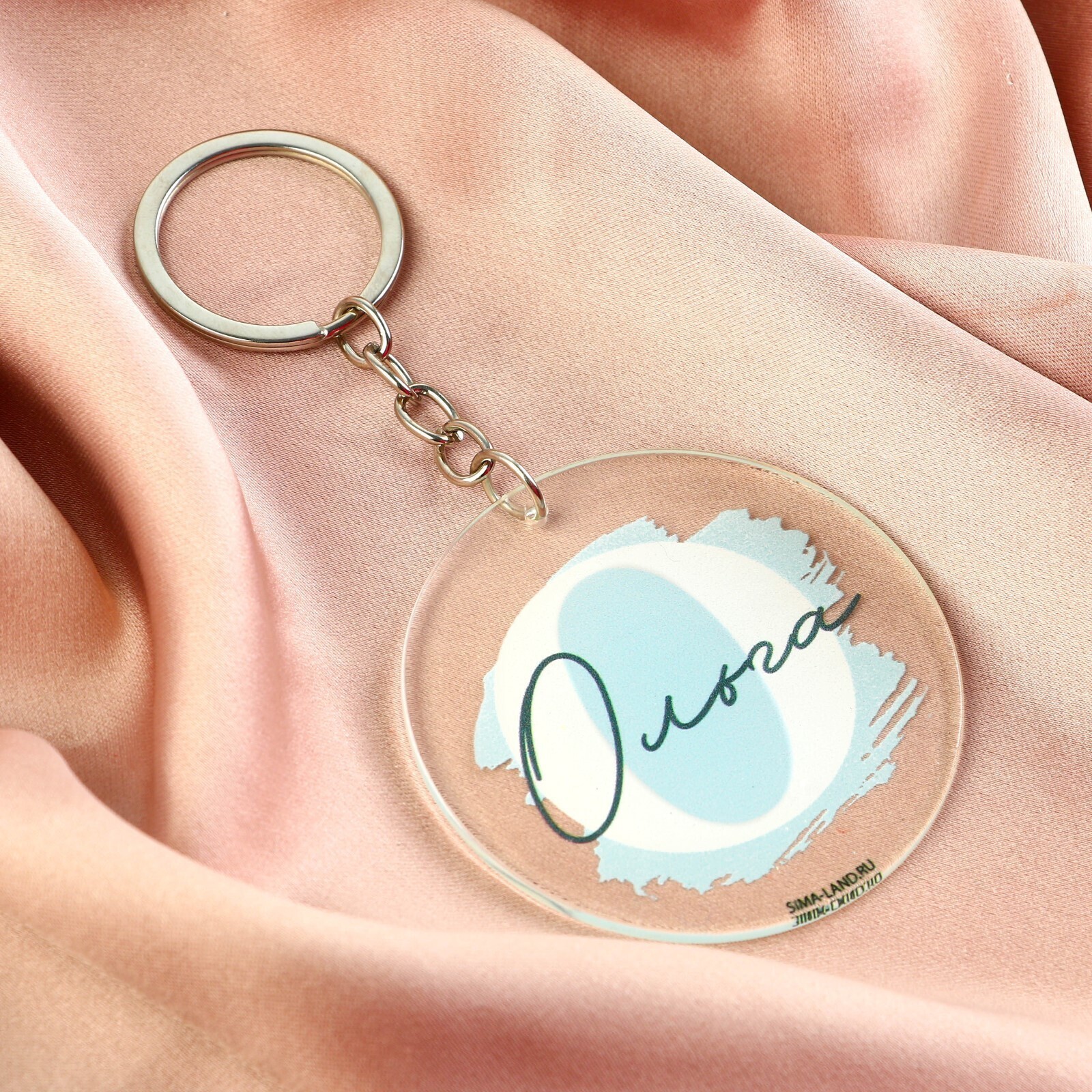 Брелок устойчив к царапинам благодаря акриловому корпусу, крепится за счет металлического кольца.