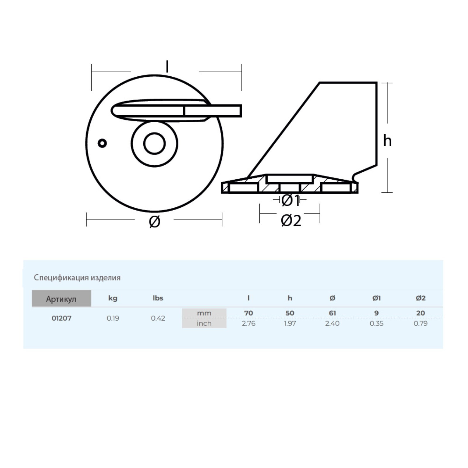 Анод Tecnoseal для Suzuki DF40-60, цинк, 01207