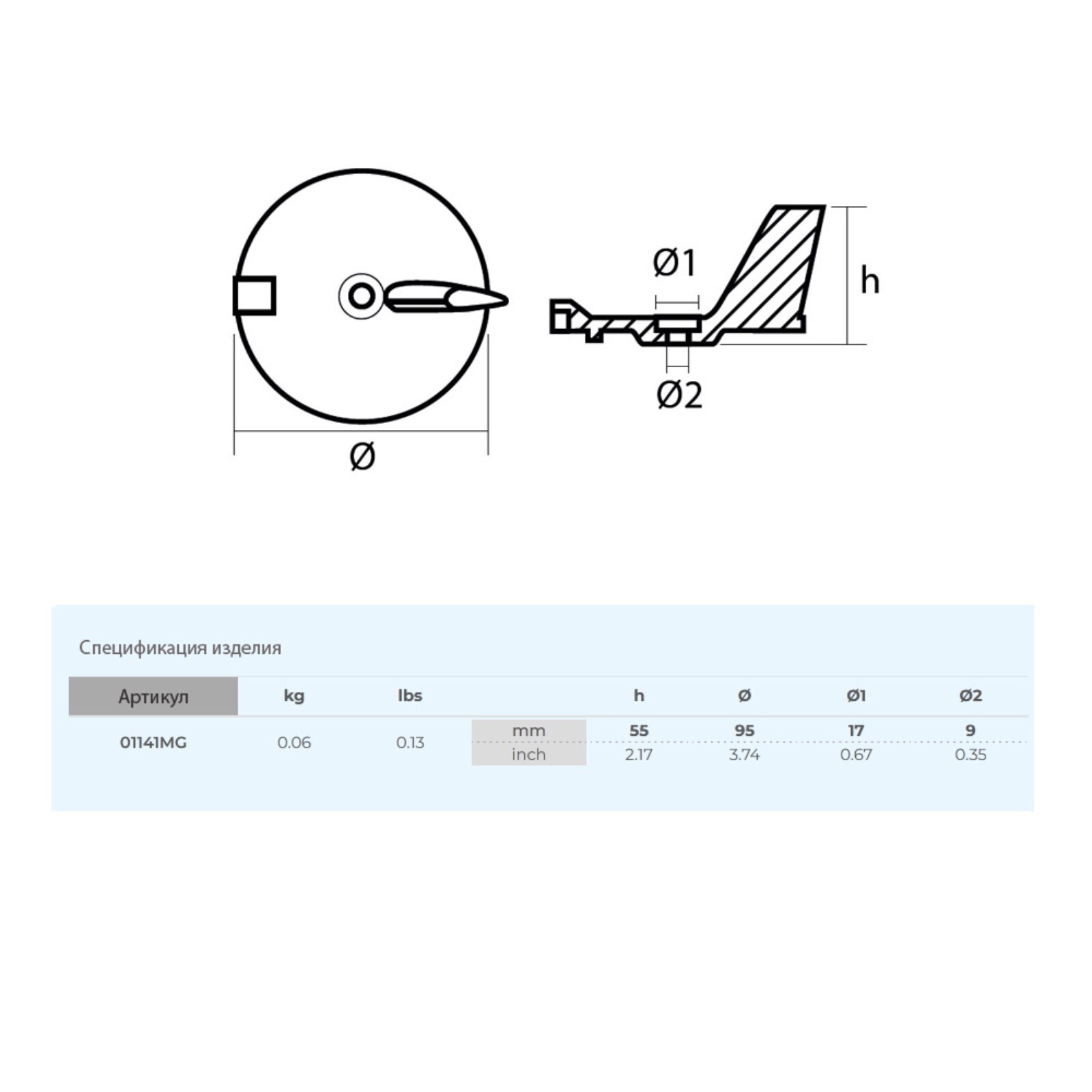 Анод Tecnoseal для Yamaha F40-60, магний, 01141MG