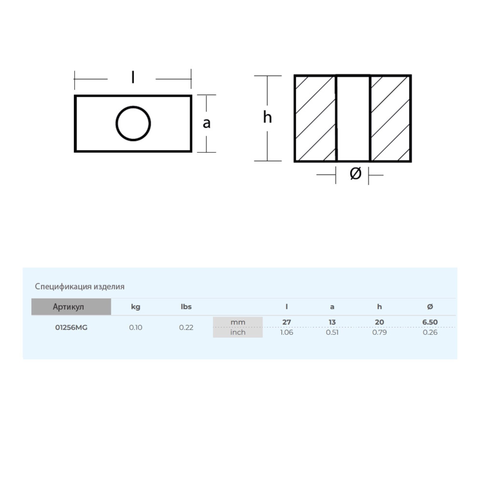 Анод Tecnoseal для Tohatsu 40D-50D, магний, 01256MG