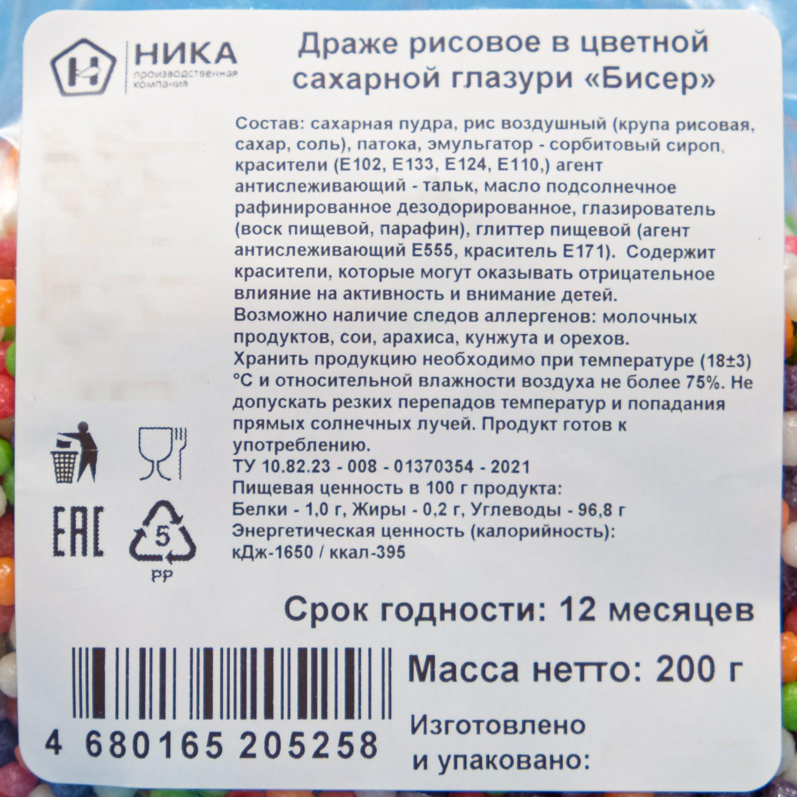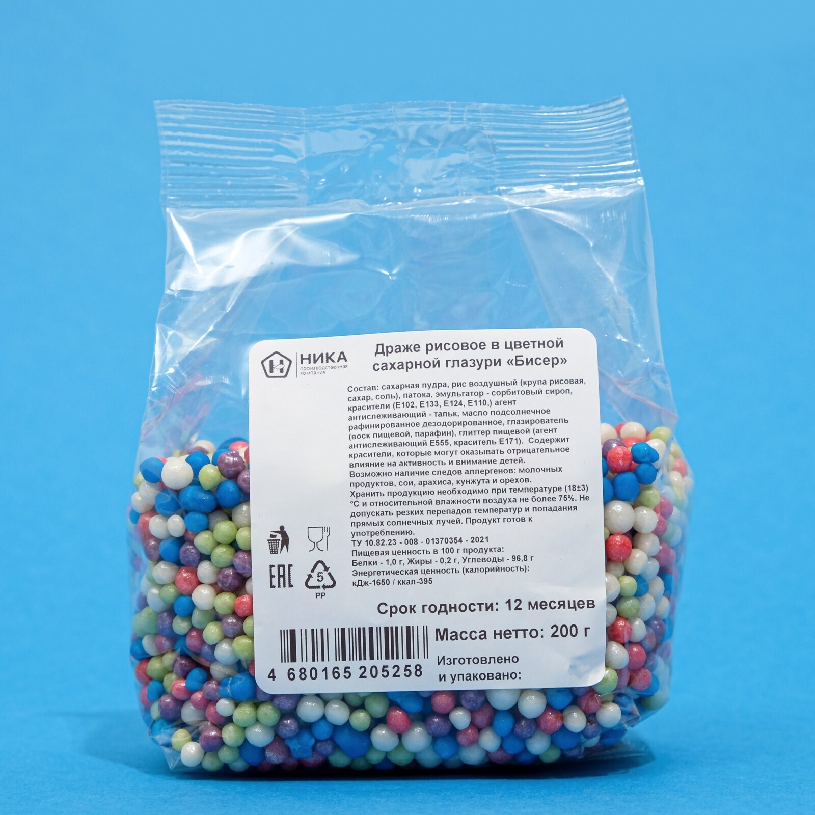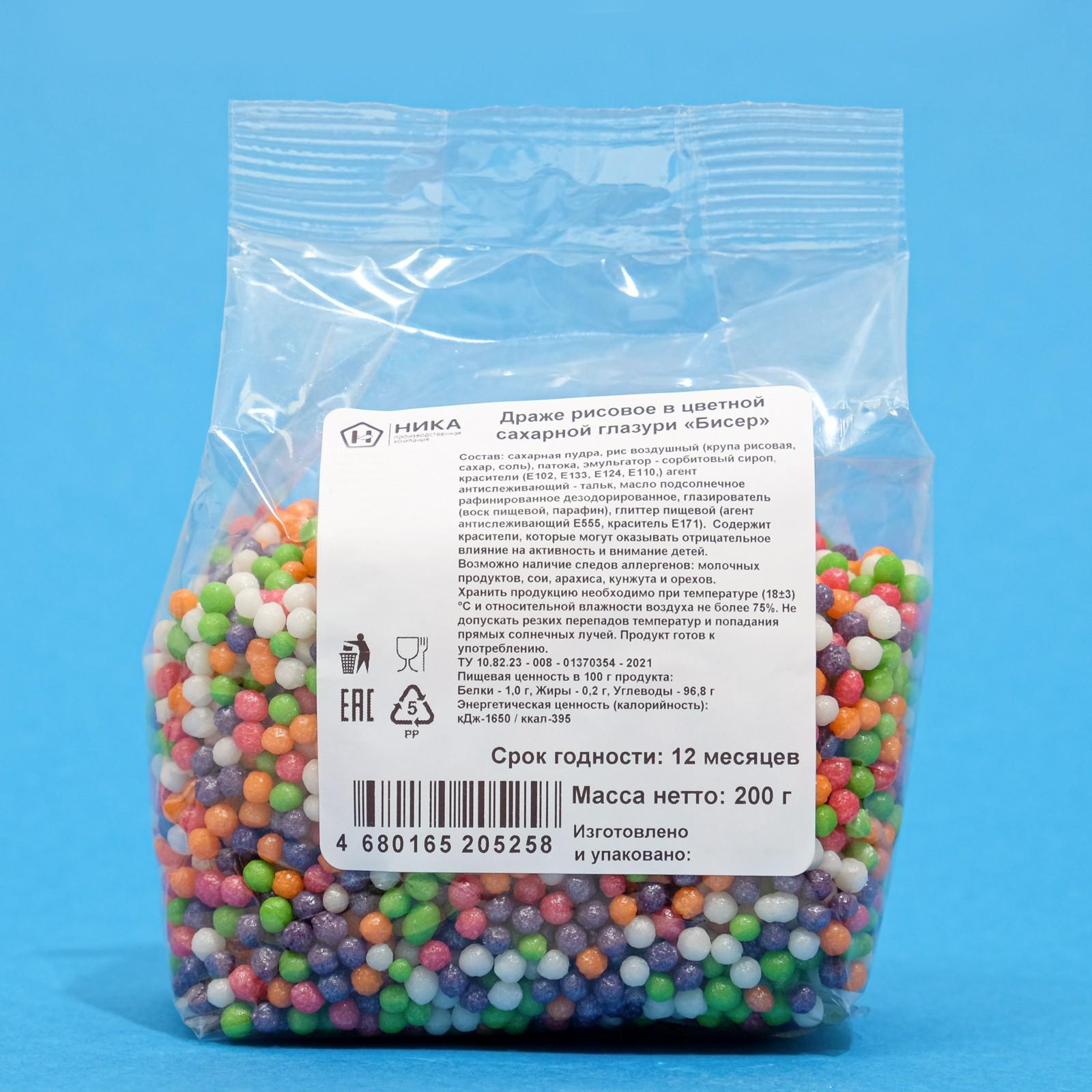 Драже рисовое в цветной сахарной глазури "Бисер" 200г*20