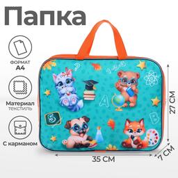 Папка с ручками текстильная А4, 350 х 270 х 70 мм, Calligrata, "Зверята"