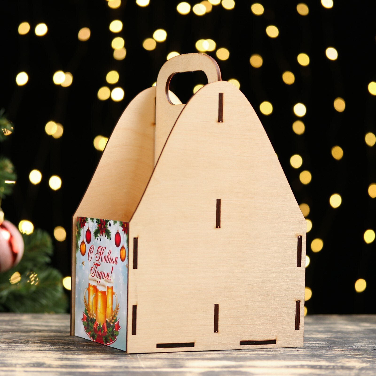 Ящик под пиво "С Новым годом!" кружки пива, снежинки