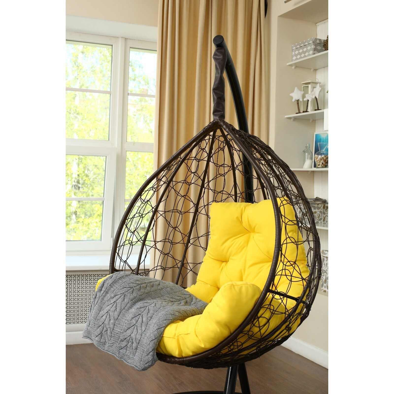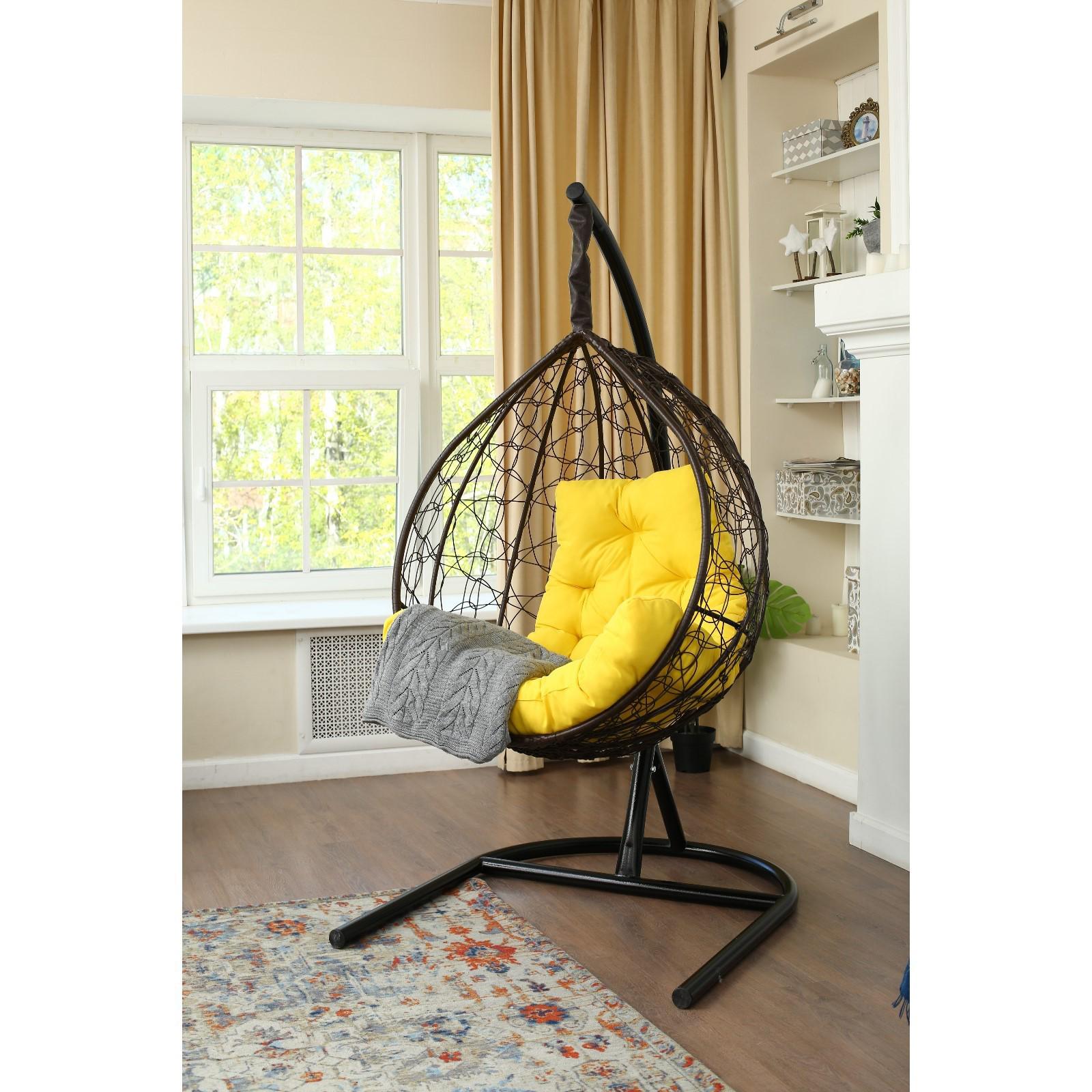 Подвесное кресло «Бароло», капля, цвет коричневый, подушка жёлтая, стойка