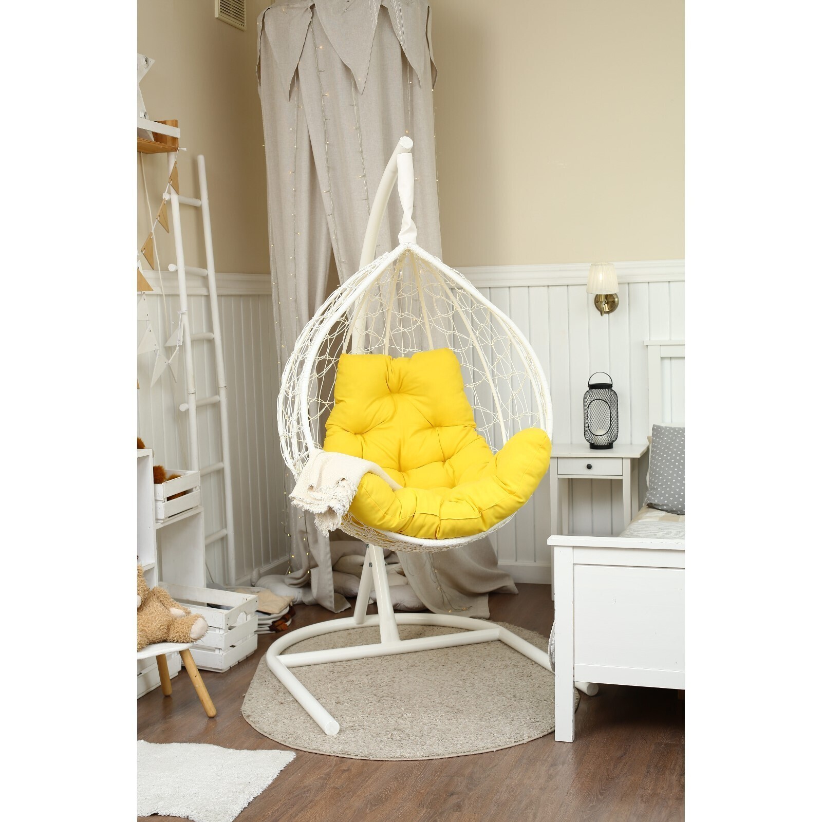 Подвесное кресло «Бароло», капля, цвет белый, подушка жёлтая, стойка
