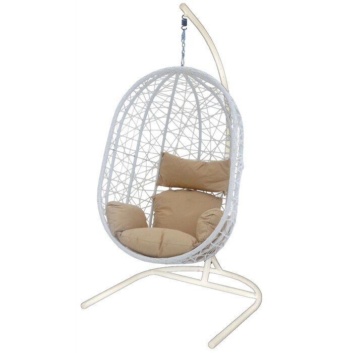 Кресло подвесное Кокон XL D52-МТ002 белое, бежевая подушка