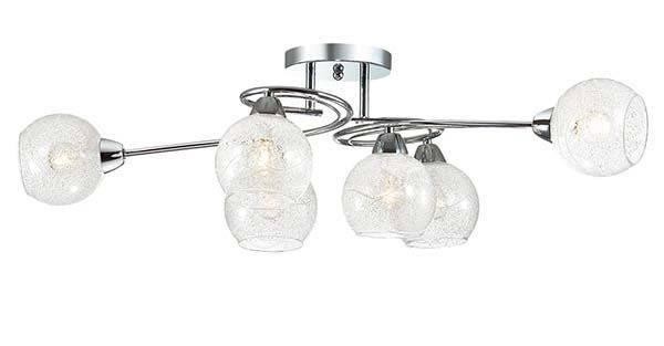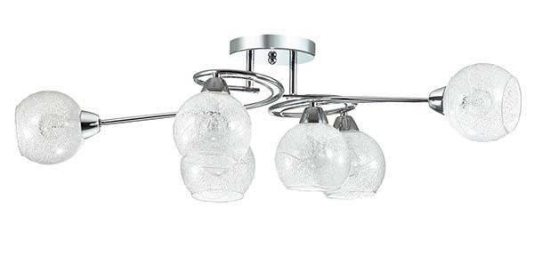 Люстра потолочная 3063/6C серии Nevette оформлена в современном стиле. Люстра состоит из стеклянных прозрачных плафонов с легким рисунком, украшенных стеклянной крошкой, и необычной арматуры хромового цвета. Стильная, оригинальная, современная - вот главные качества данной модели. Цоколь E14. Мощность 6x60W. Нет ламп в комплекте.