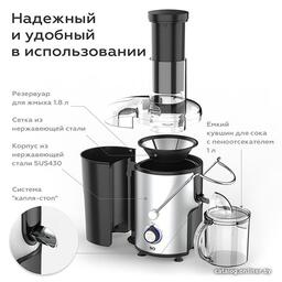 • Комплектация - соковыжималка- толкатель- контейнер для отходов- контейнер для сока- щетка для чистки- руководство по эксплуатации- гарантийный талон