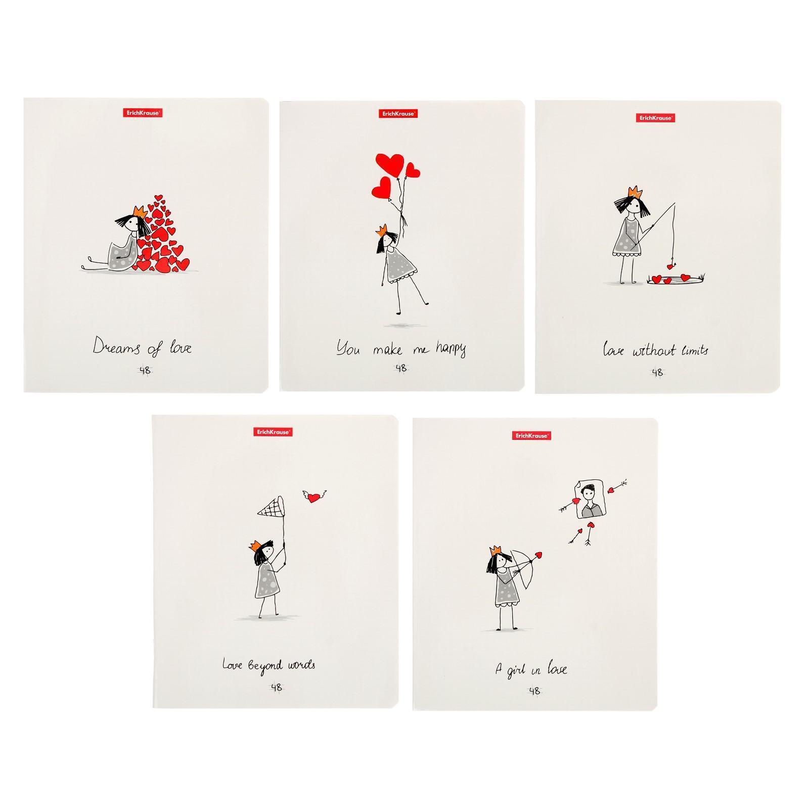 Тетрадь 48 листов в клетку ErichKrause Dreams of Love, обложка мелованный картон, глянцевый УФ-лак, блок офсет, белизна 100%, МИКС