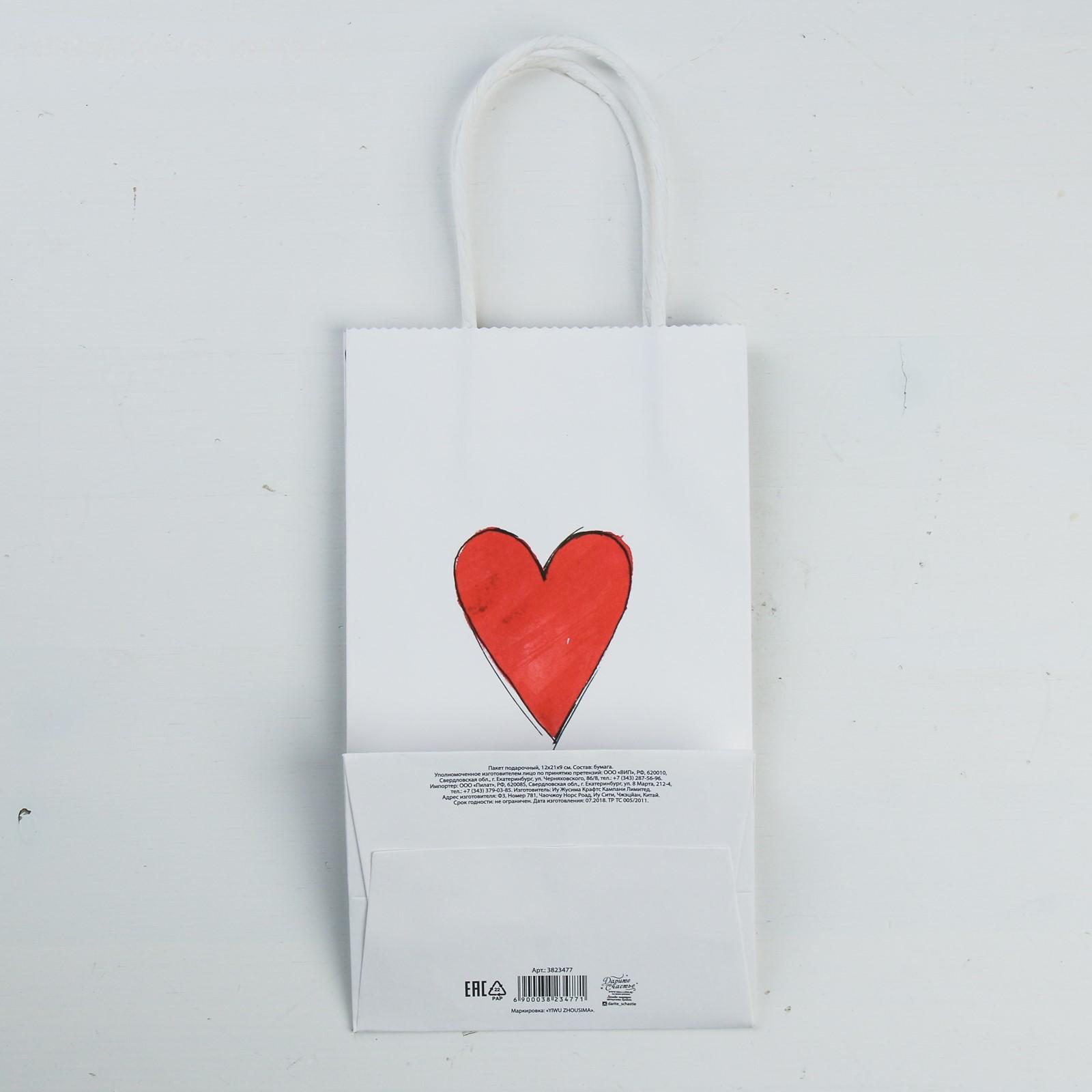 Пакет подарочный крафтовый «Love you», 12 × 21 × 9 см