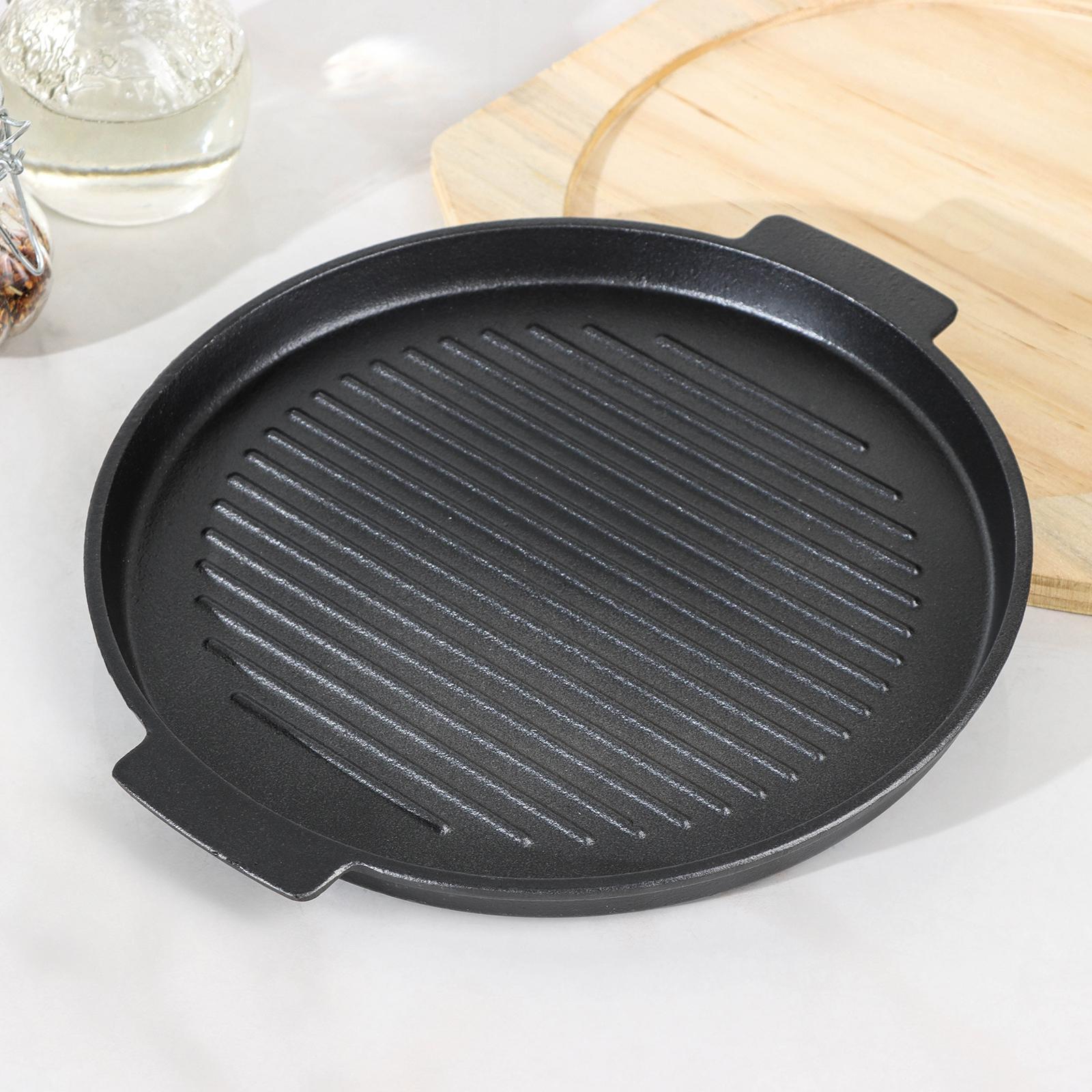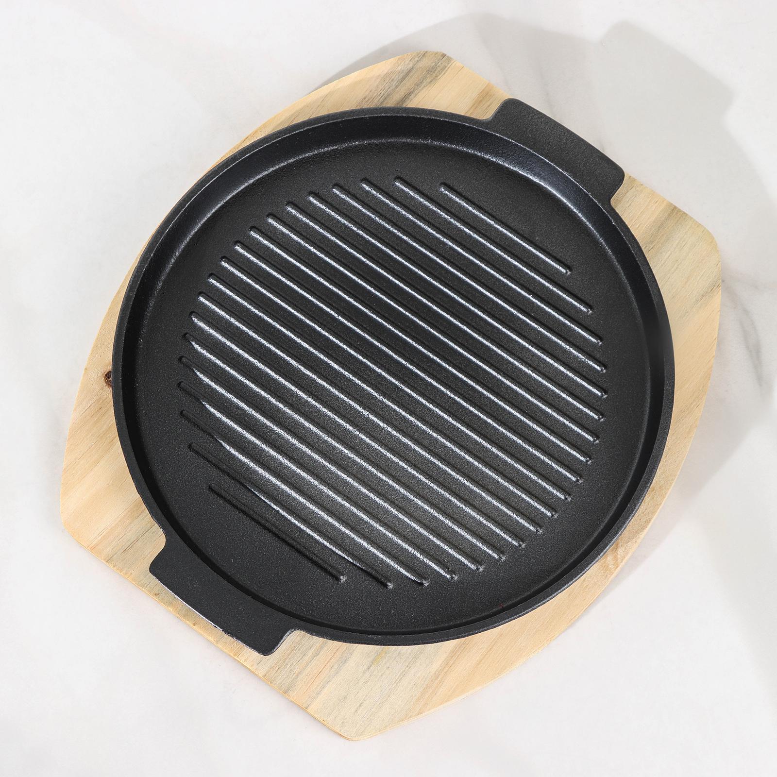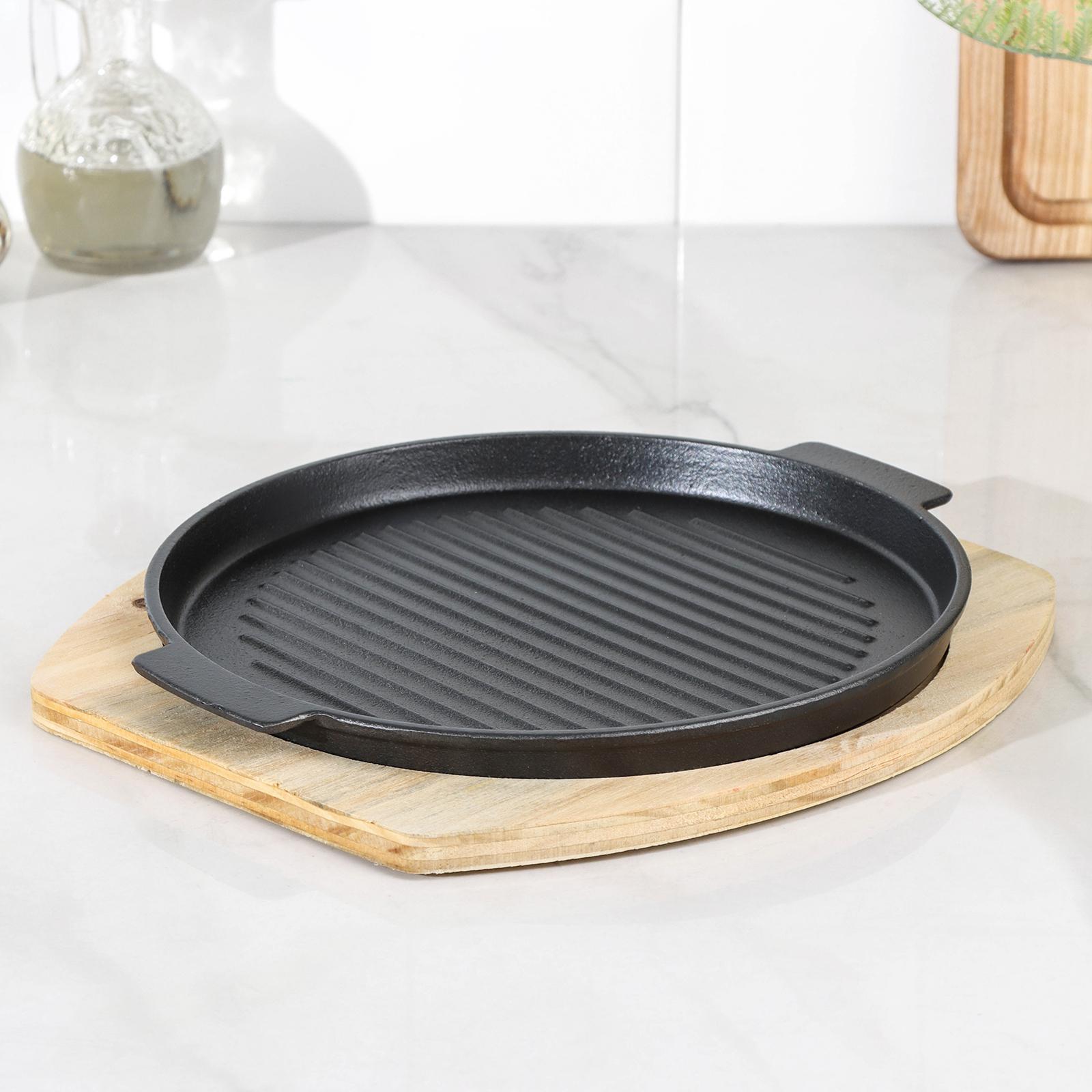 Сковорода «Круг. Гриль», 26,7×23,5 см, с ручками, на деревянной подставке