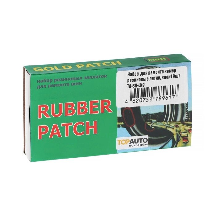 Набор для ремонта камер TOPAUTO, резиновые латки 9 шт, 95 х 45 мм, клей