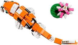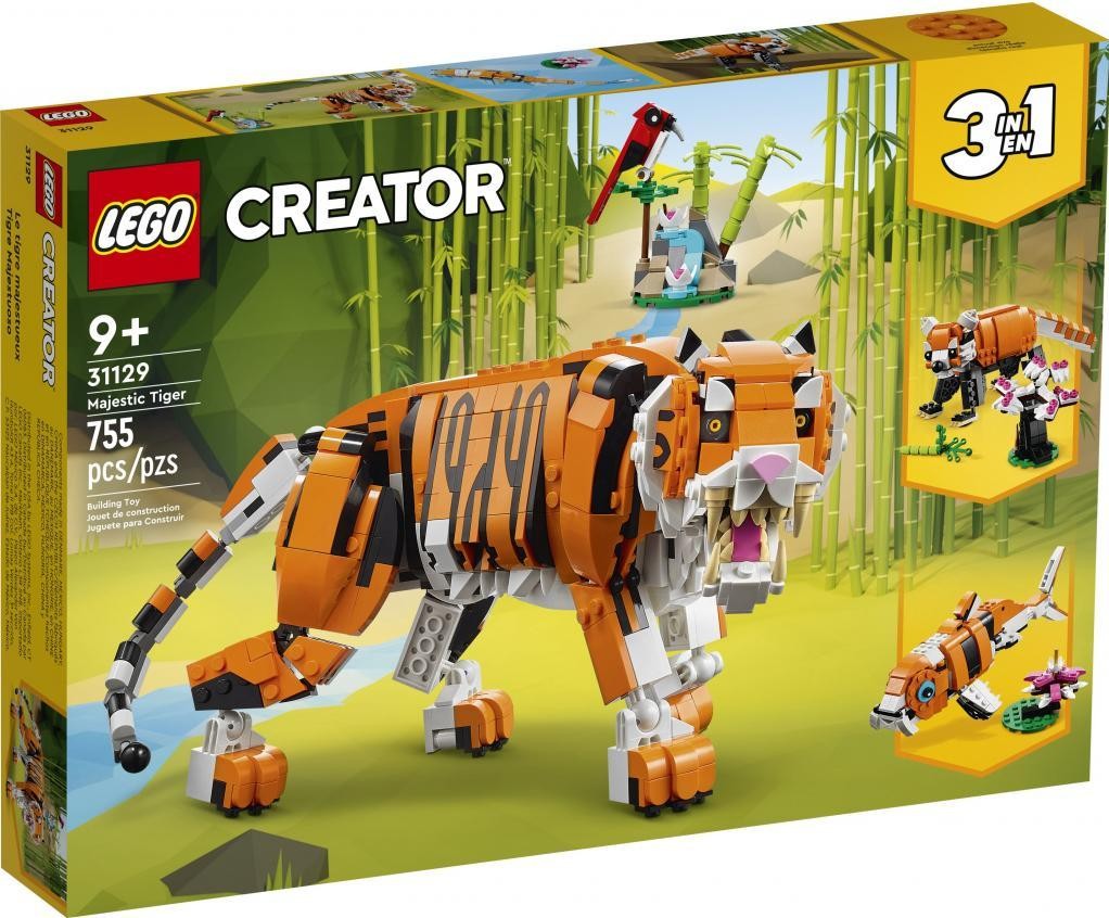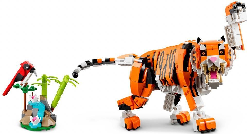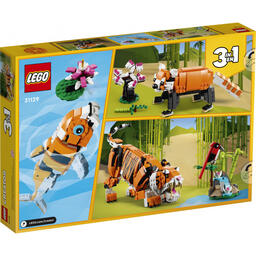 Вирушайте до тропического лісу на захоплюючі пригоди тварин разом з конструктором LEGO Creator 3-в-1 Величний тигр! Подивіться, як могутній тигр патрулює ліс і готується накинутися. Щоб отримати більше дій, ви можете перетворити тигра в симпатичну червону панду, яка спить на деревах і жує бамбук, золоту рибку, що плаває озерами, або розпалити свою уяву і використати кубики, щоб створити нову тварину. Вибір за вами з цим фантастичним набором 3-в-1.