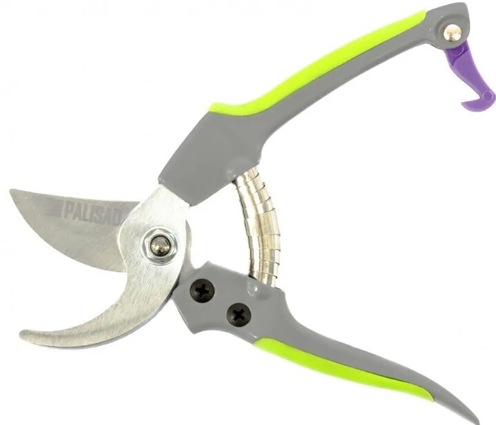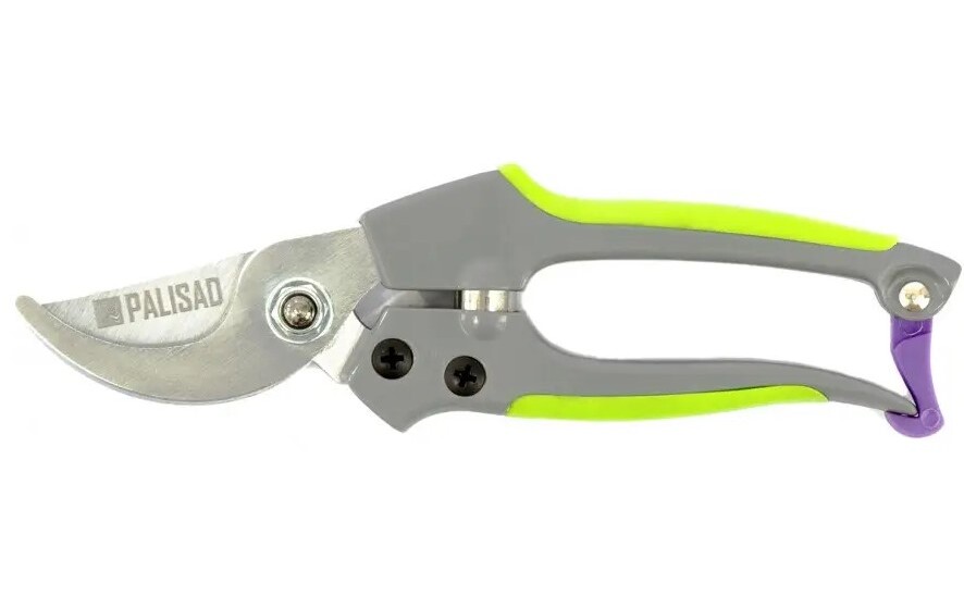 секатор с металлическими ручками и прорезиненными противоскользящими накладками обрезает ветки толщиной до 15 мм;