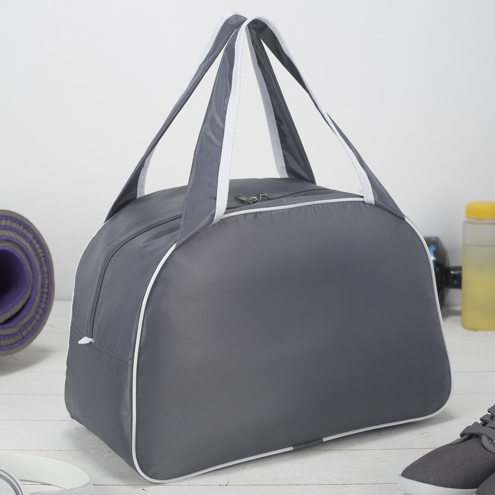 Сумка спортивная на молнии, цвет серый/белый