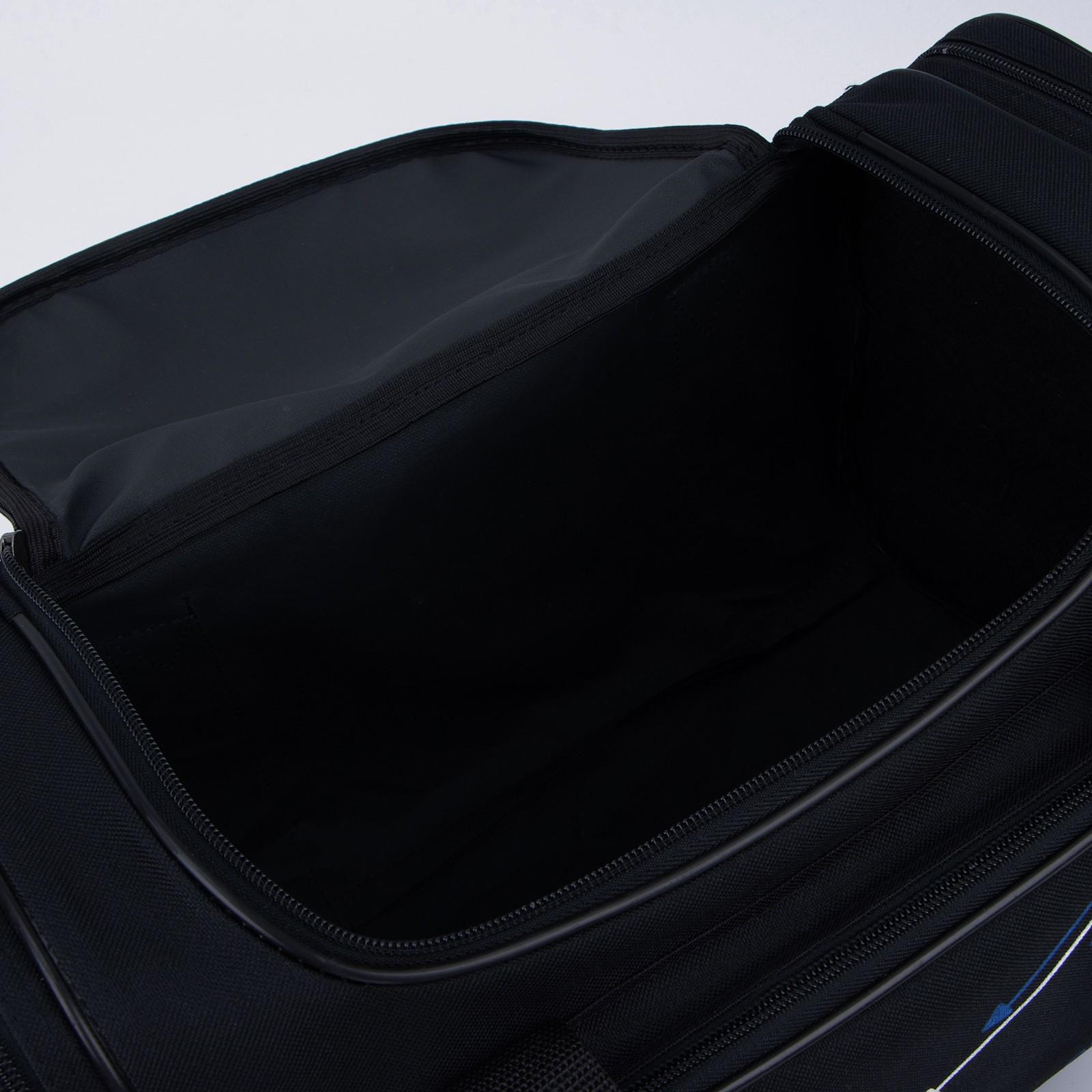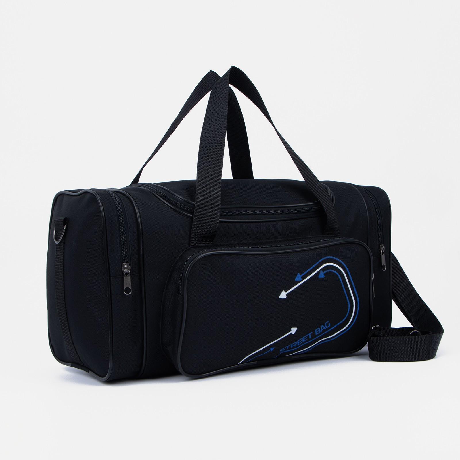 Сумка дорожная на молнии, 3 наружных кармана, длинный ремень, цвет чёрный/синий