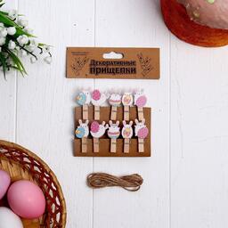 Прищепки декоративные с веревкой для подвеса "Пасхальный зайчик", 10 шт.