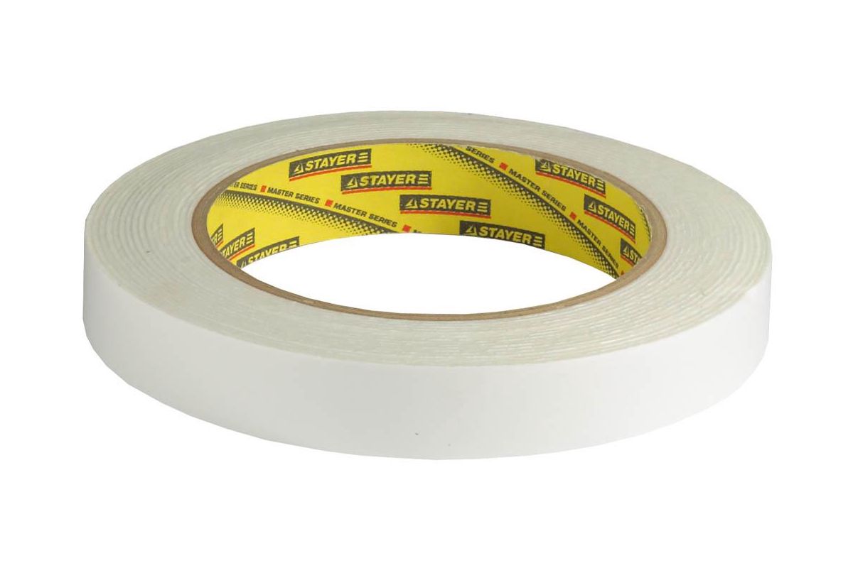 Двухсторонняя клейкая лента STAYER Professional 12231-19-05 на вспененной основе, белая, 19мм х 5м