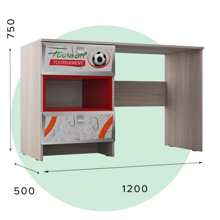 Стол для детской Футбол 750х1200х520 Серый/Красный/Ясень Шимо Светлый/ Красный