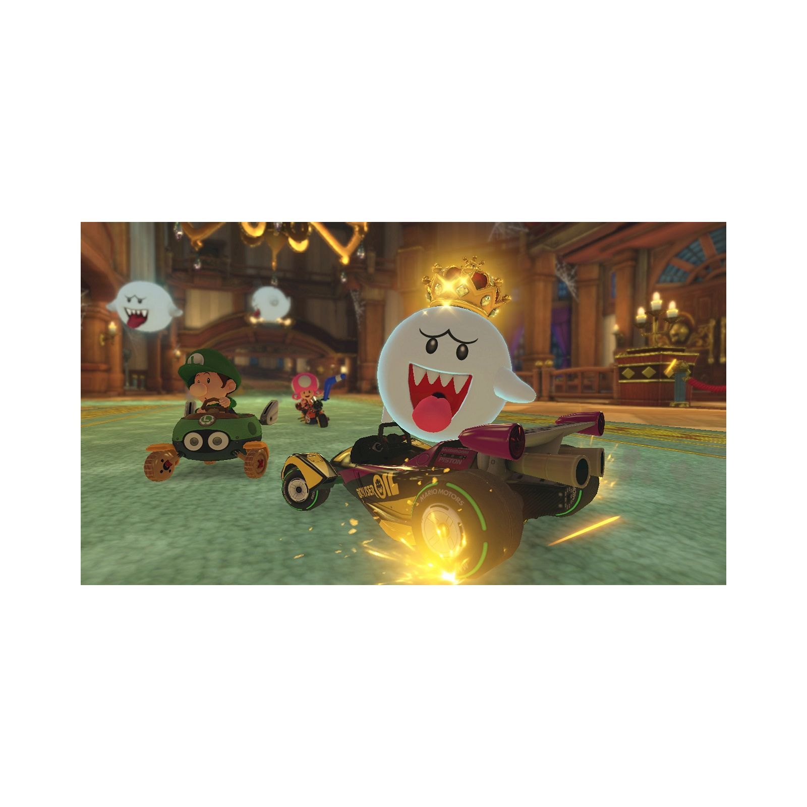Гравці зможуть брати одразу два предмети, включаючи нові предмети з попередніх ігор Mario Kart, наприклад, бу — примара, що краде предмети, — і перо, яке дозволяє стрибати вище в режимі Бій. Гравці навіть можуть вибрати нову функцію смарт-управління, за допомогою якої водії-початківці впораються з водінням навіть у болідах з 200 куб. див. Грайте в режимі ТВ із роздільною здатністю до 1080p.