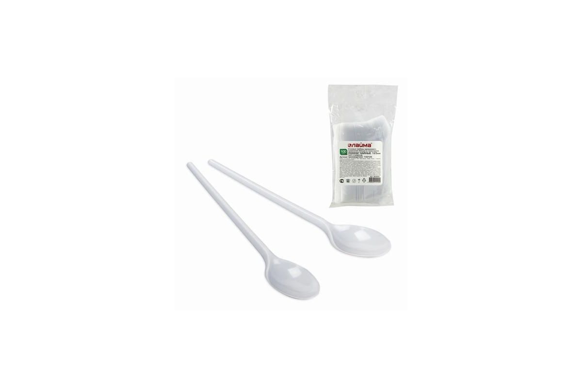 Одноразовые ложки ЛАЙМА 603081 чайные 125мм, КОМПЛЕКТ 100шт., ЭТАЛОН, пластиковые, белые